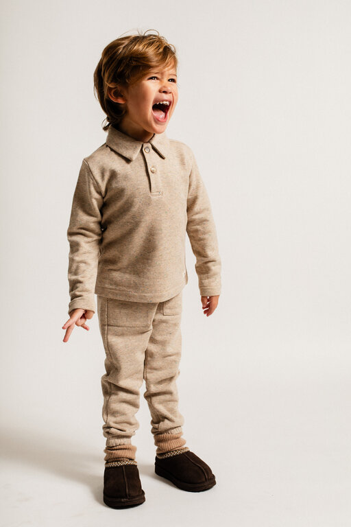 Account aanmakenJongens polo melange – comfortabele basis met lange mouw Deze jongens polo met lange mouwen is een tijdloos basisitem dat in geen enkele kindergarderobe mag ontbreken. De polo is gemaakt van een zachte melange jersey kwaliteit, wat zorgt voor een comfortabele fit en een casual, maar toch nette uitstraling. De knoopsluiting met twee knoopjes en de klassieke kraag geven de polo een stoere en stijlvolle look.
