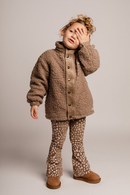 Account aanmakenTeddy jasje met kraag – bruin Dit teddy jasje met kraag in warm bruin is hét item voor kinderen die houden van comfort en stijl. De zachte teddykwaliteit maakt het jasje heerlijk warm en cosy – ideaal voor de eerste dagen van de herfst buiten en net zo fijn om in de winter binnen te dragen. Het klassieke kraagje geeft het jasje een tijdloze uitstraling en maakt het makkelijk te combineren. Of je nu gaat voor een stoere jongenslook of een lieve meisjesstijl, dit jasje past overal bij. Combineer het met een flare legging, knitwear of een stoere broek voor de perfecte outfit.
