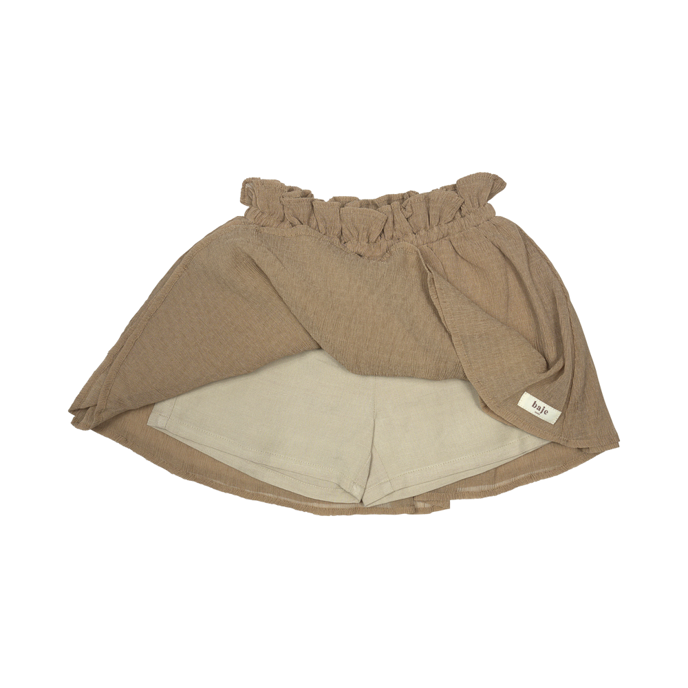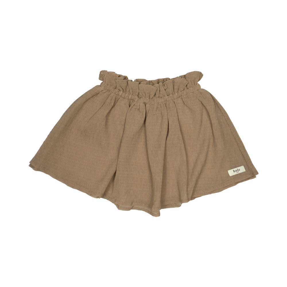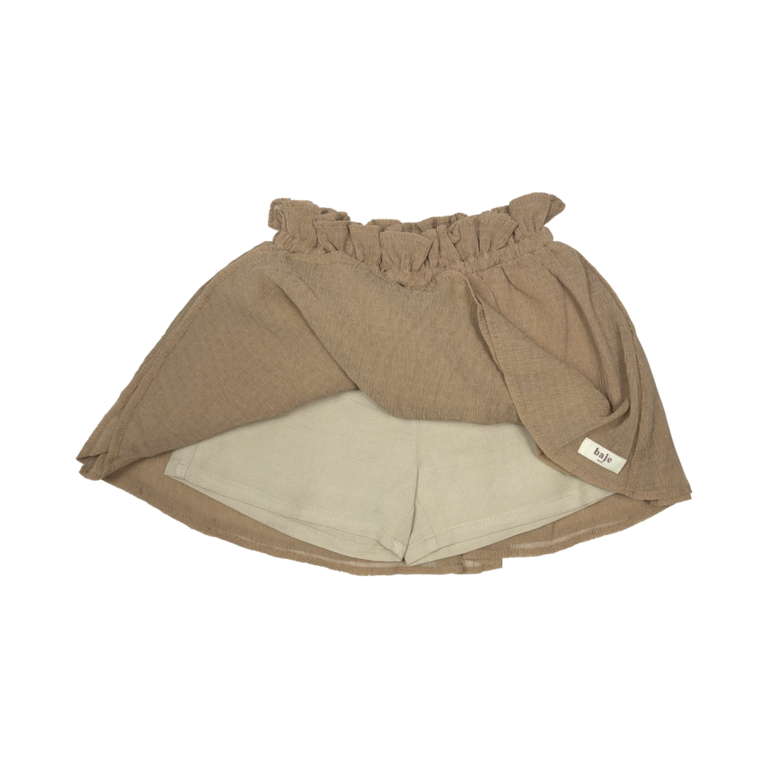 Account aanmakenThe plisse skort is back on the map, in an almost nostalgically 'sweet' version. With the taupe skort Strawberry, Baje expresses a romantic style where ruffle details, plisse fabric and short lining alternate. Made of soft and airy cotton plisse and fully lined.