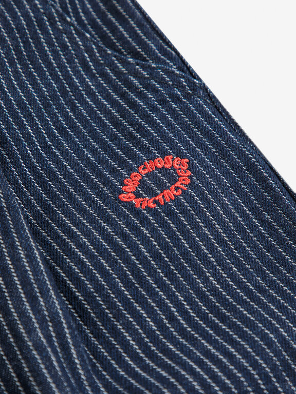 Account aanmakenNavy blue pants. Designed with regular crotch, elasticated waistband, slash pocket, double pleat, embroidery, straight fit, adjustable drawstring, long length, patch pocket and denim. Made in Portugal.
