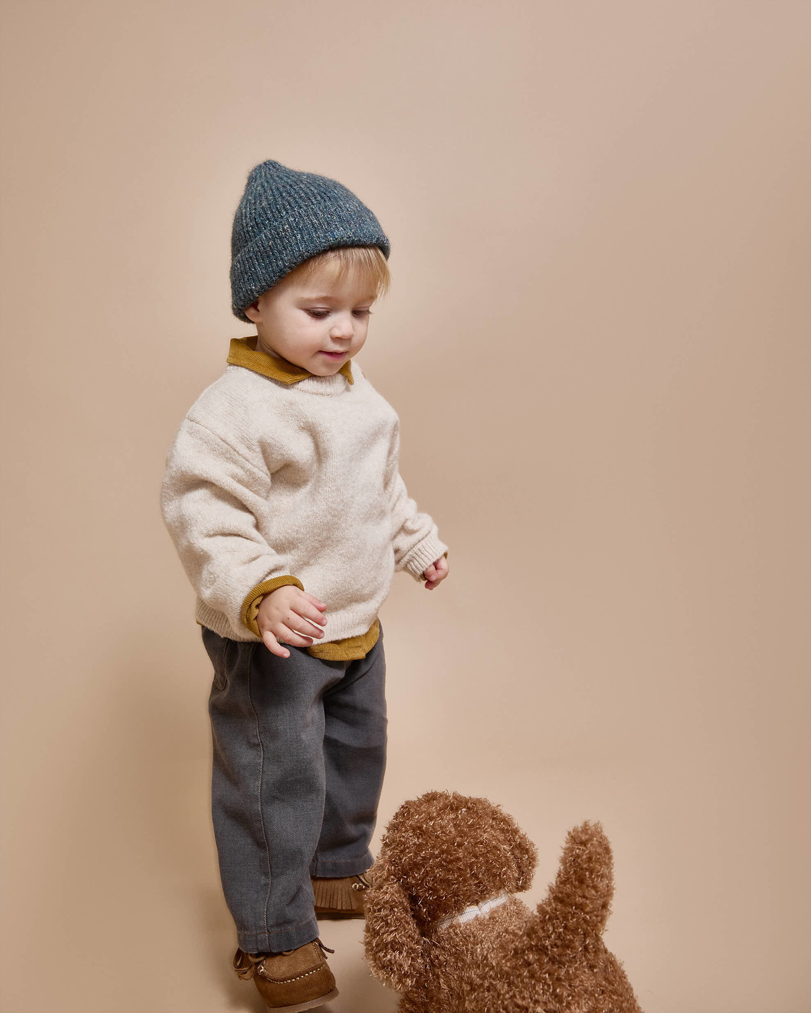 Account aanmakenMelange knitted jumper. Round neck with button fastening. Ribbed cuffs and hem. Tab label detail on hem.