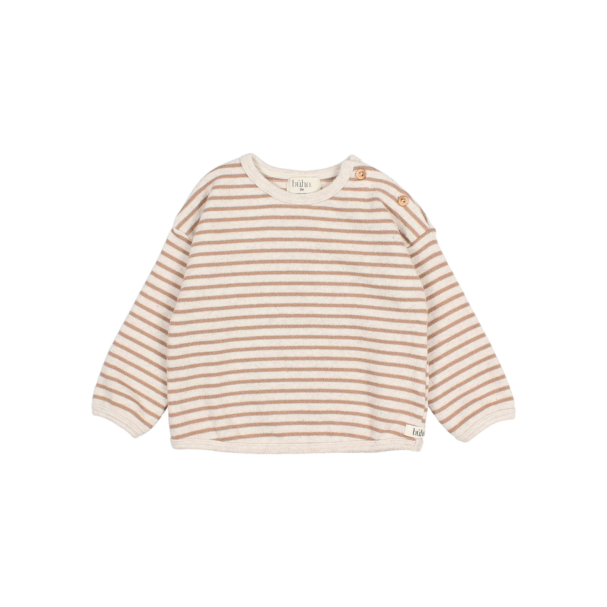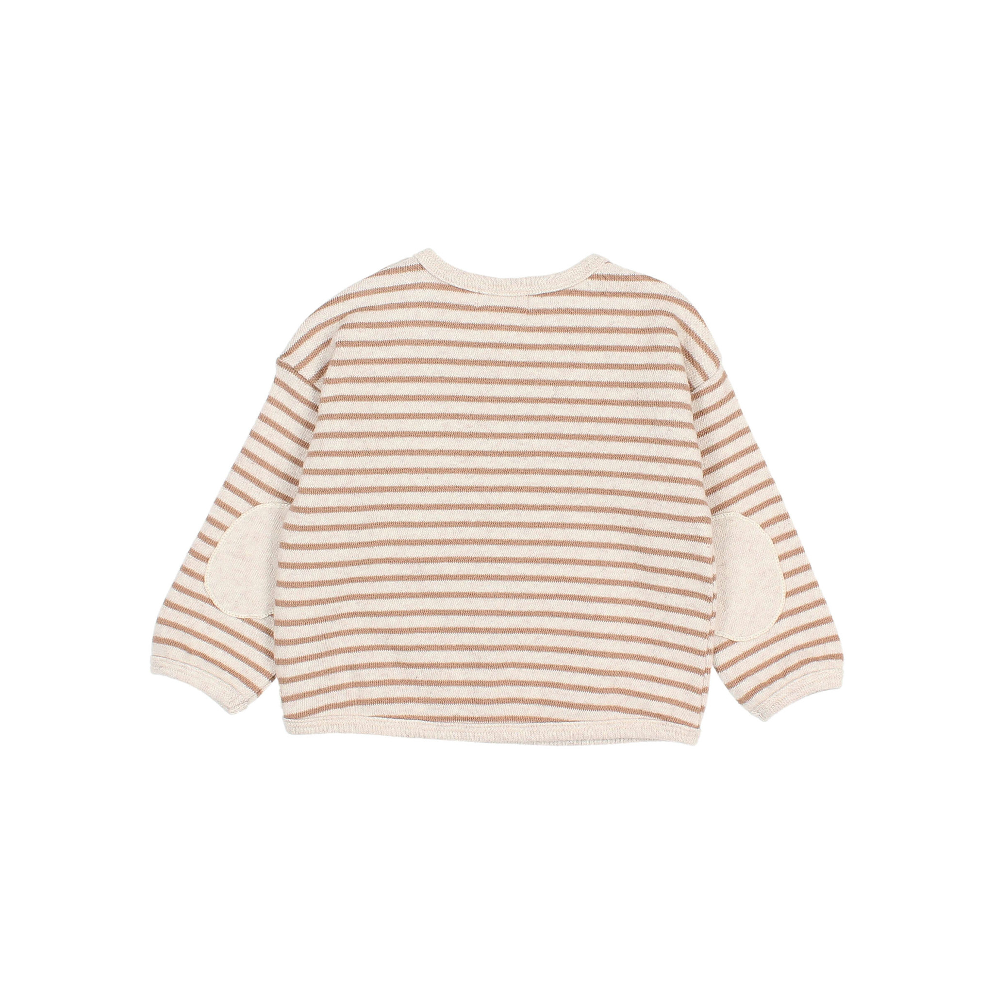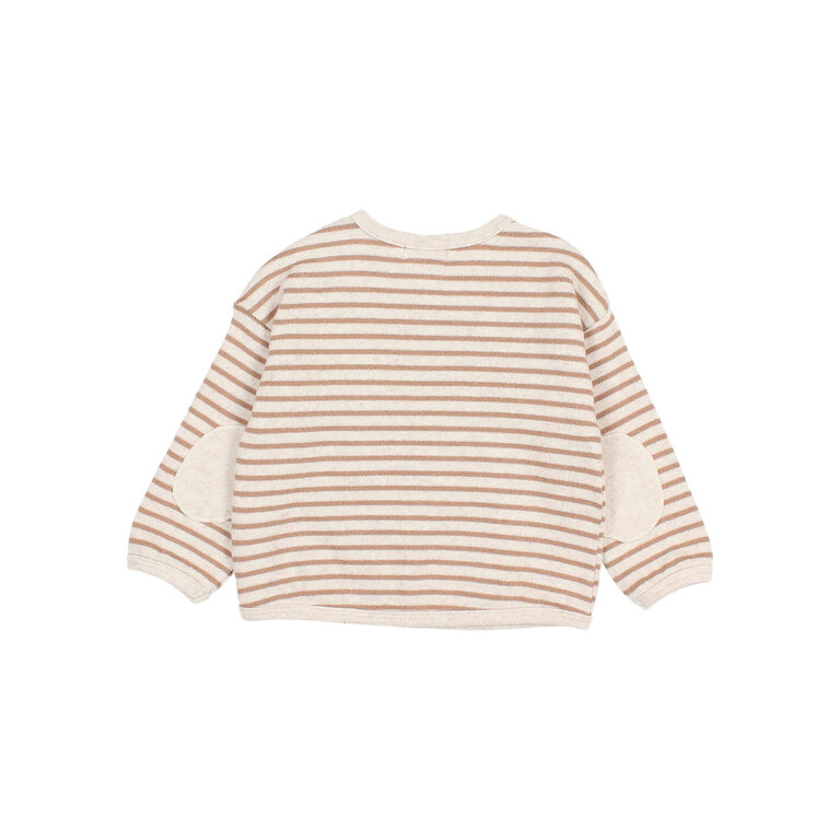 Account aanmakenSoft knit striped sweatshirt. Round neck with wood button fastening at shoulder. Contrast elbow patches.