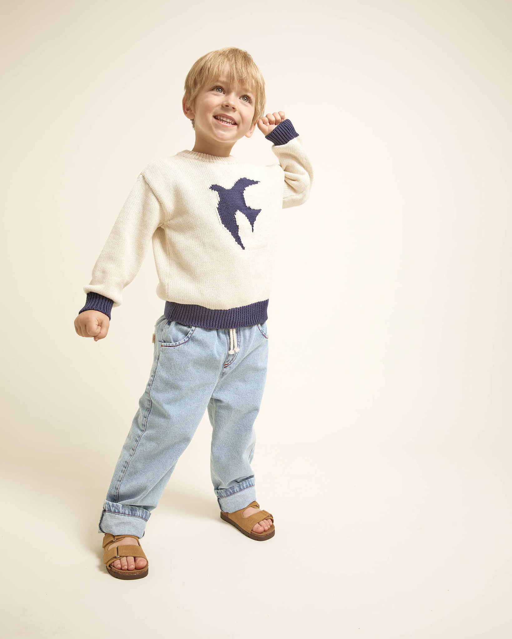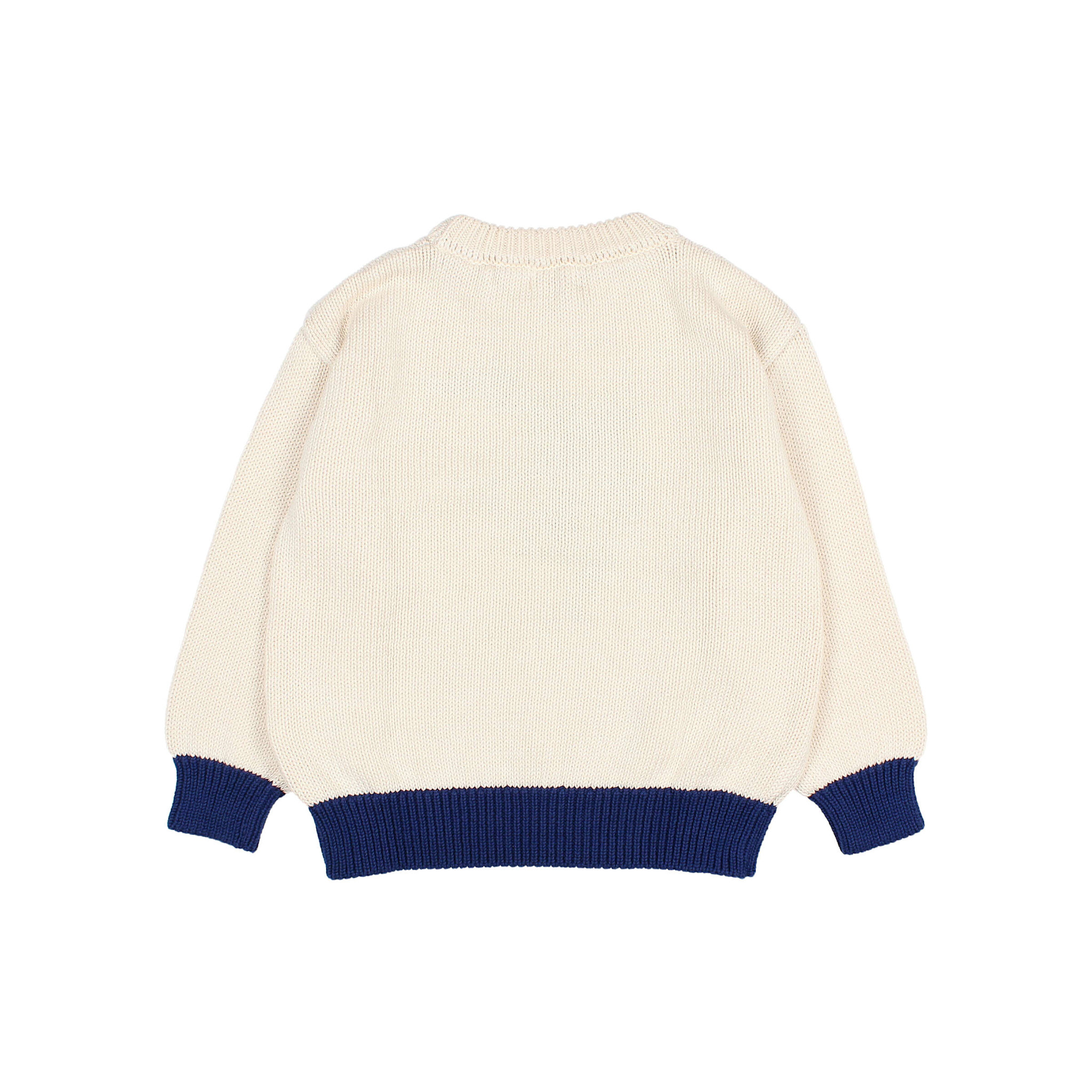 Account aanmakenOrganic cotton knit jumper with bird motif. Round neck. Contrasting cuffs and hem.