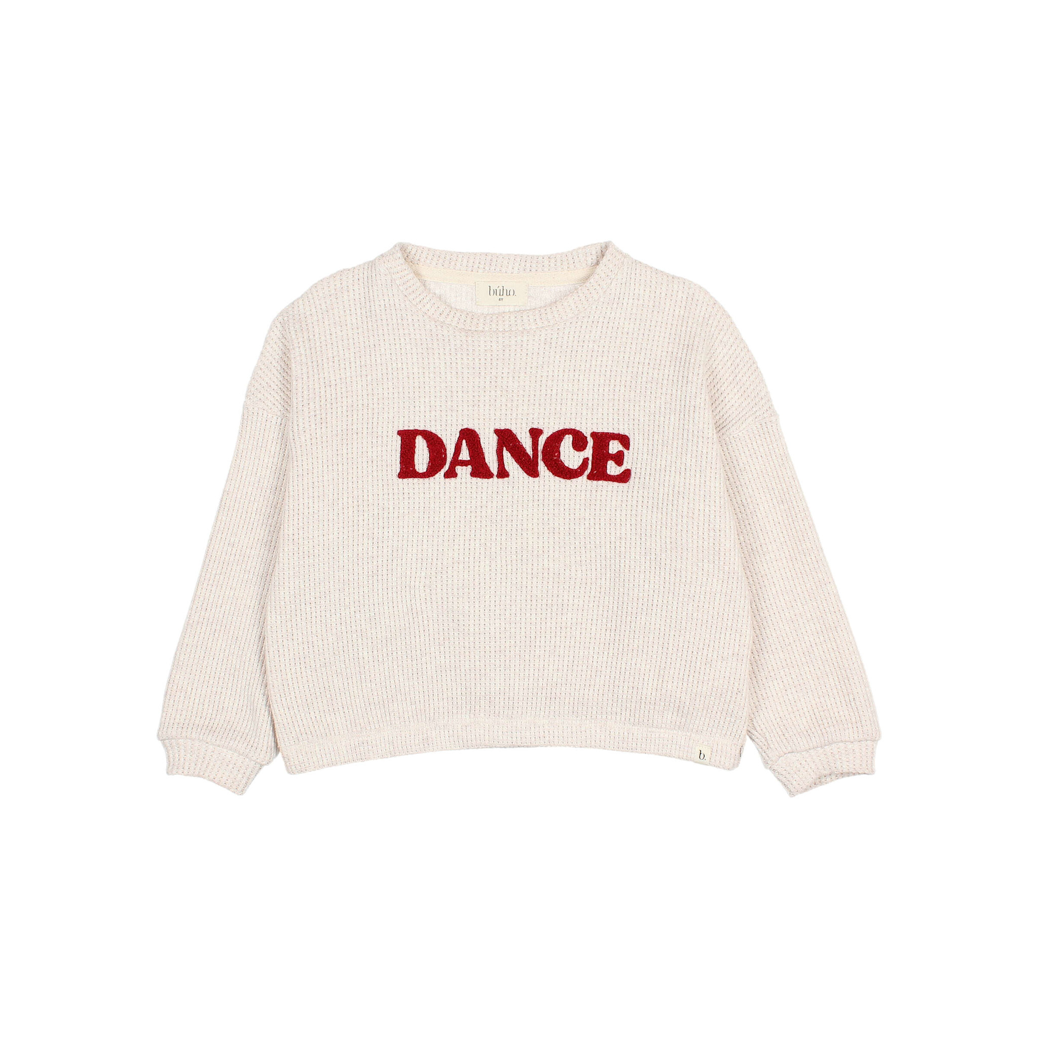 Account aanmakenWaffle knit sweatshirt with dance motif. Round neck. Tab label on hem.