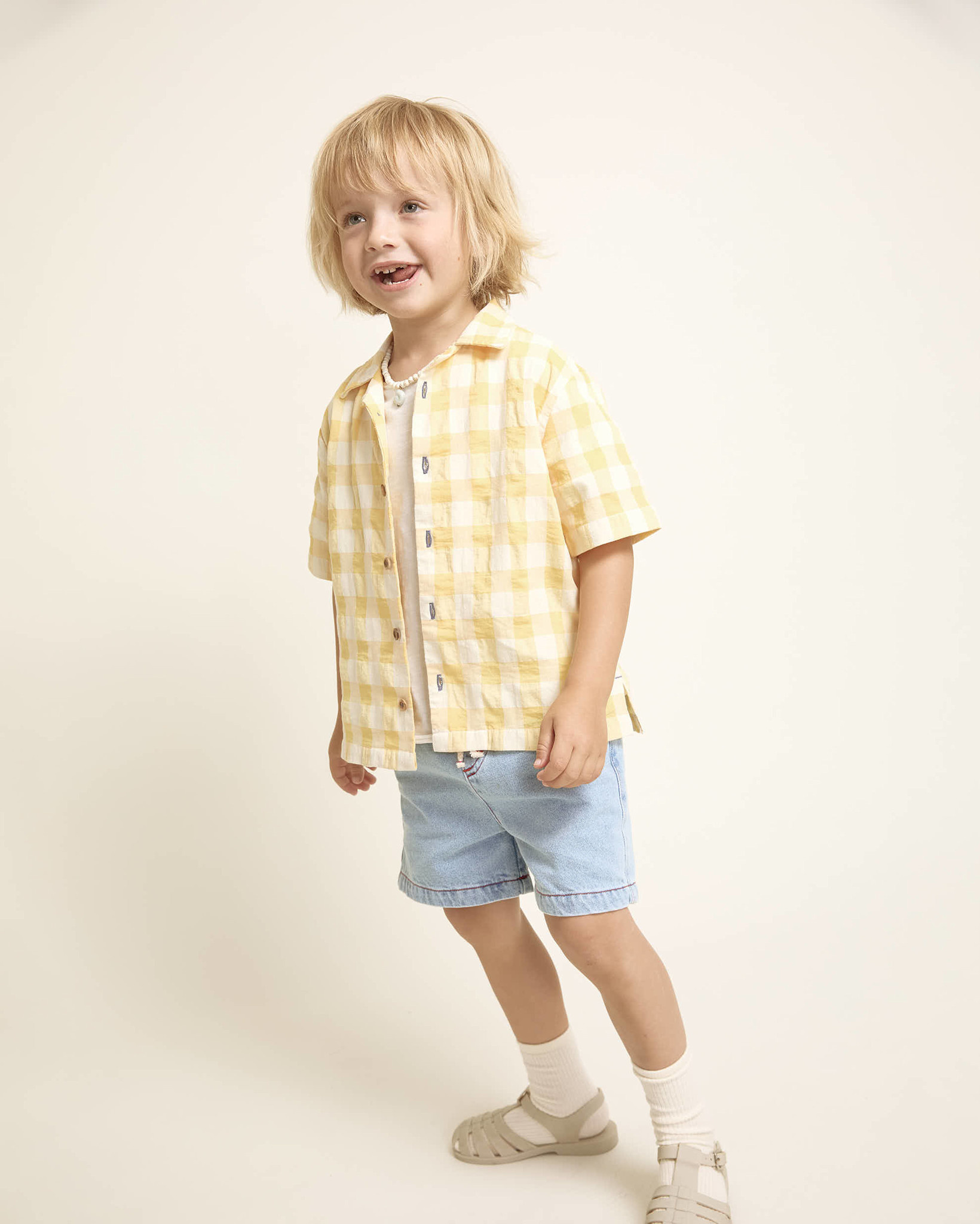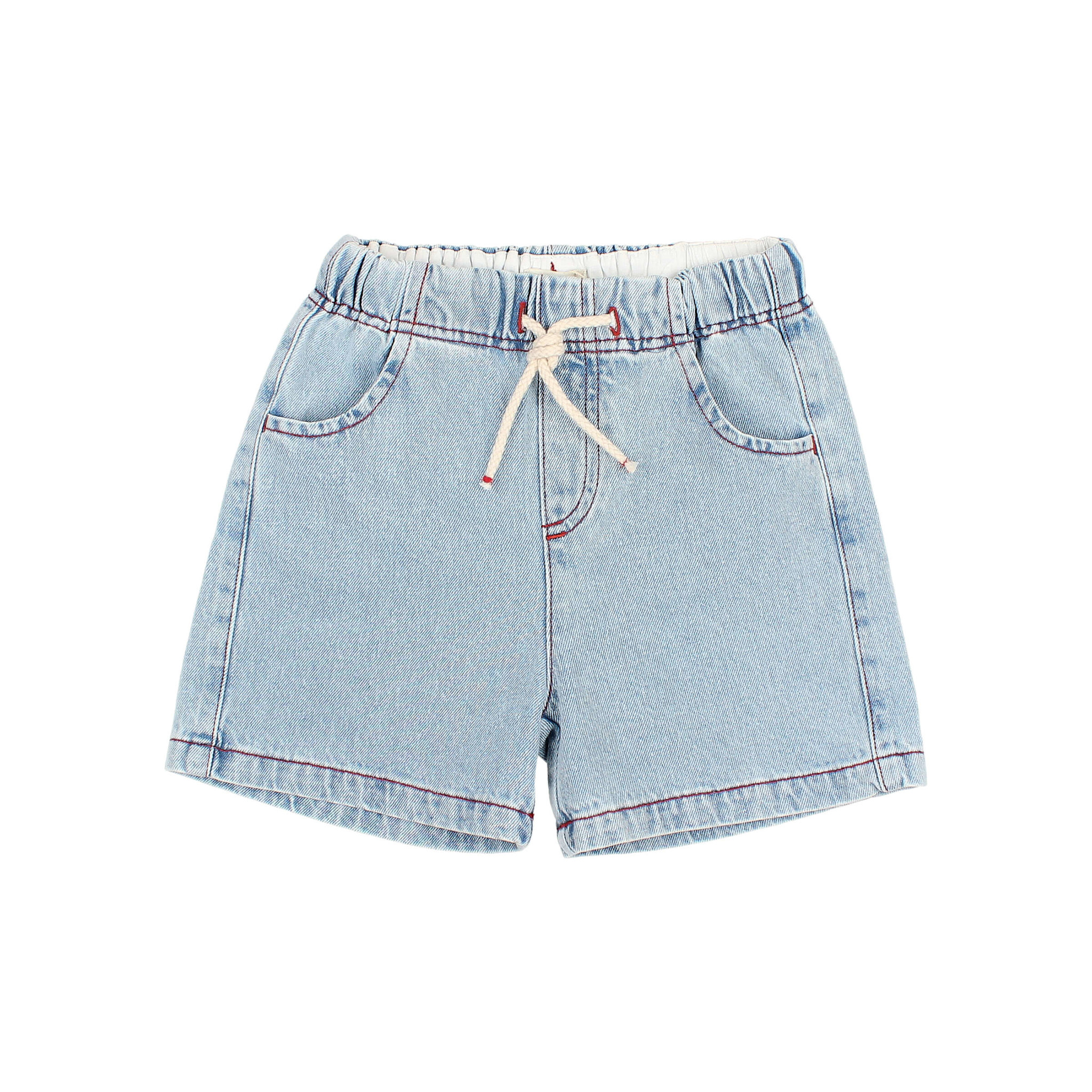 Account aanmakenLight wash denim bermuda. Elastic waistband with raw cotton drawstring for a better fit. Front pockets and patch pockets on the back. Contrast stitching and topstitching details.