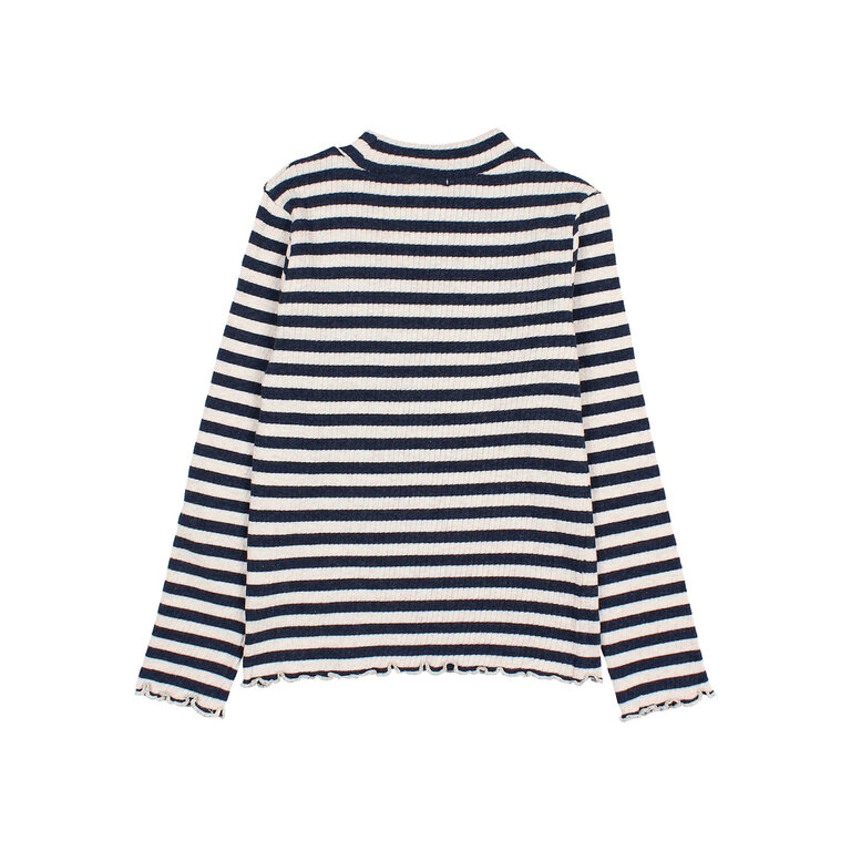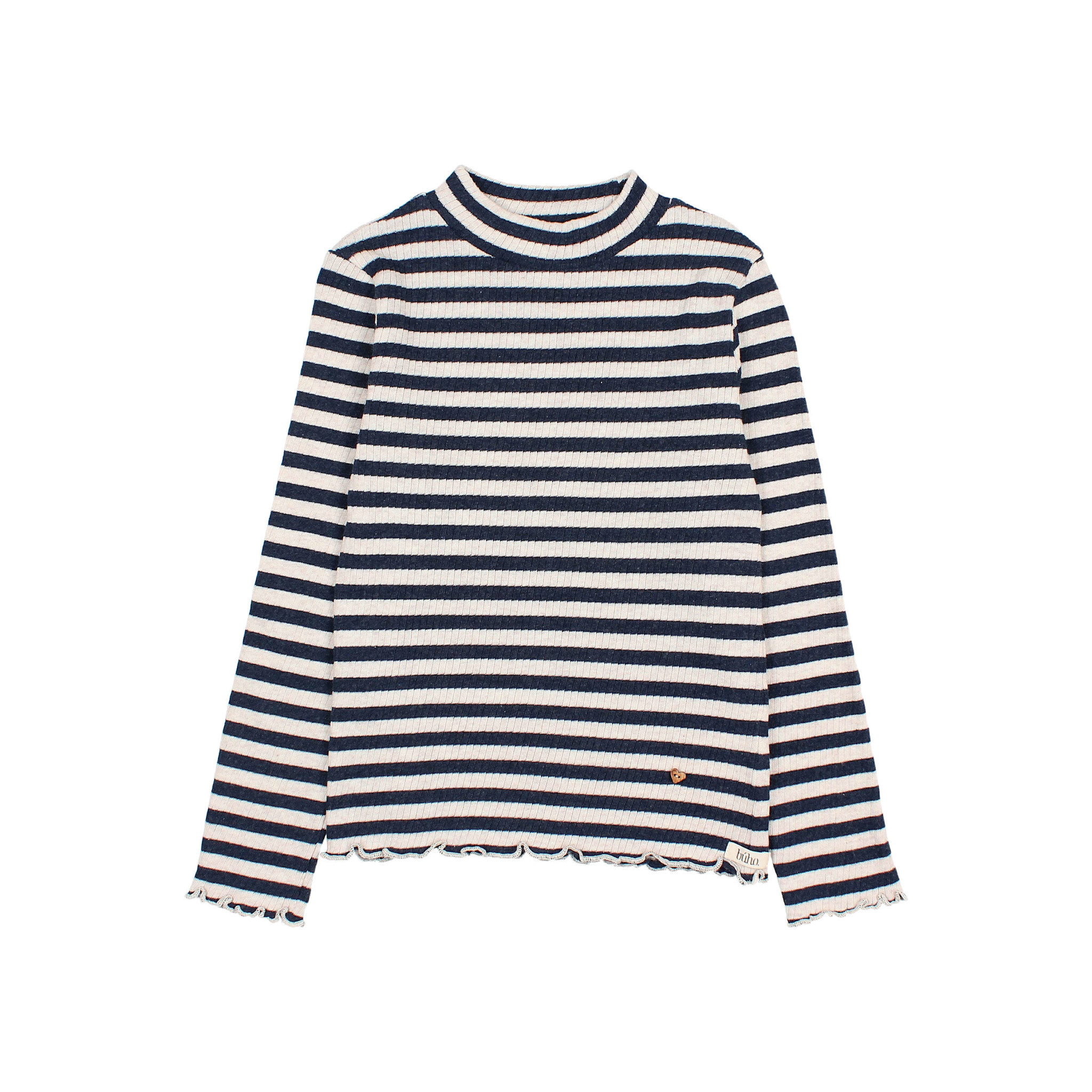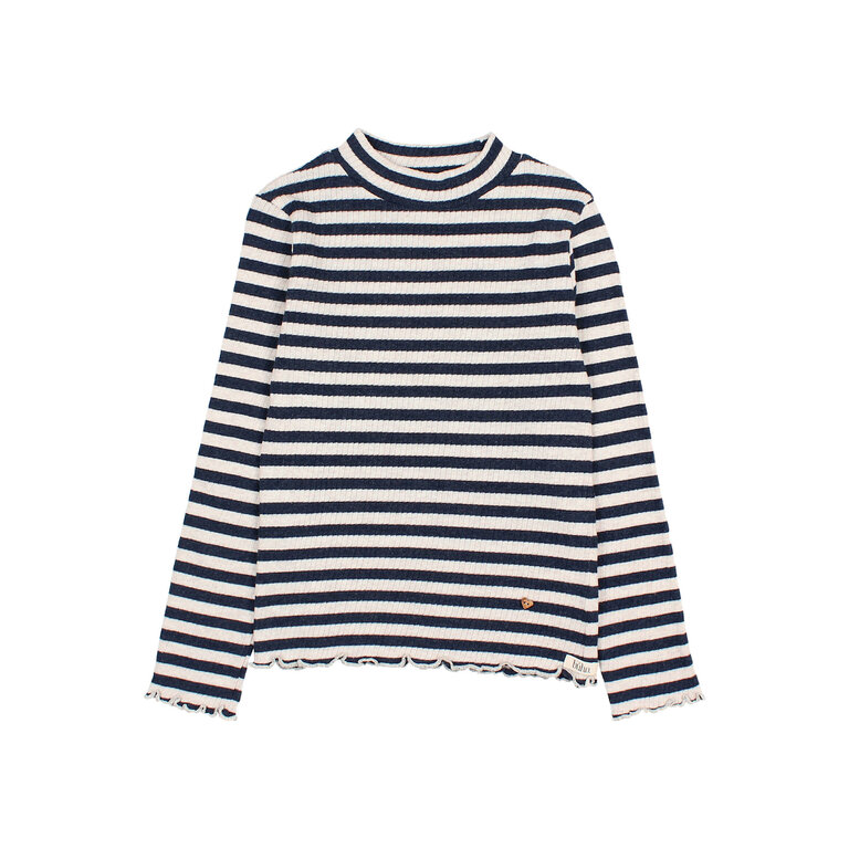 Account aanmakenLong sleeve striped ribbed T-shirt. Semi-swan round neck. Wooden heart detail on the hem.