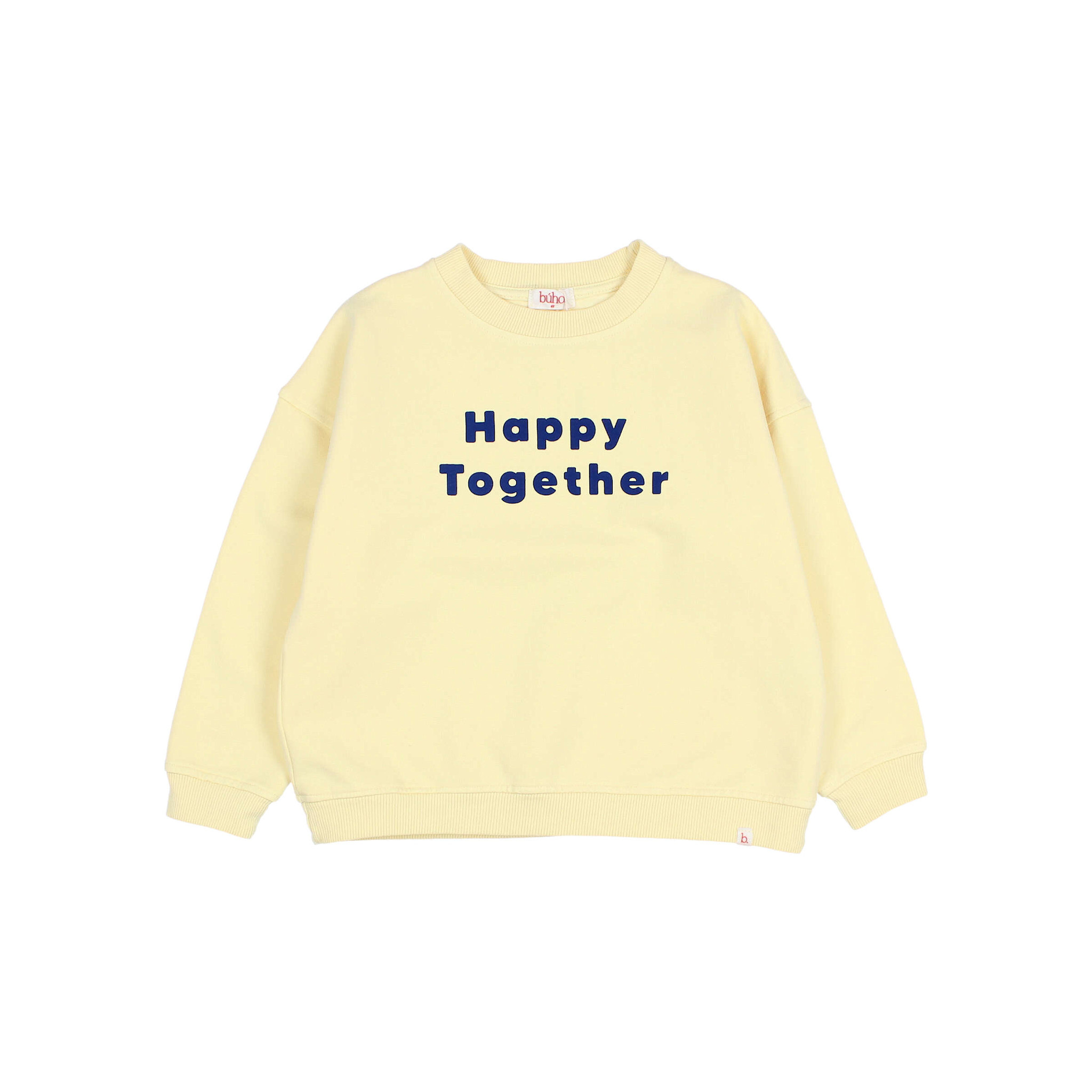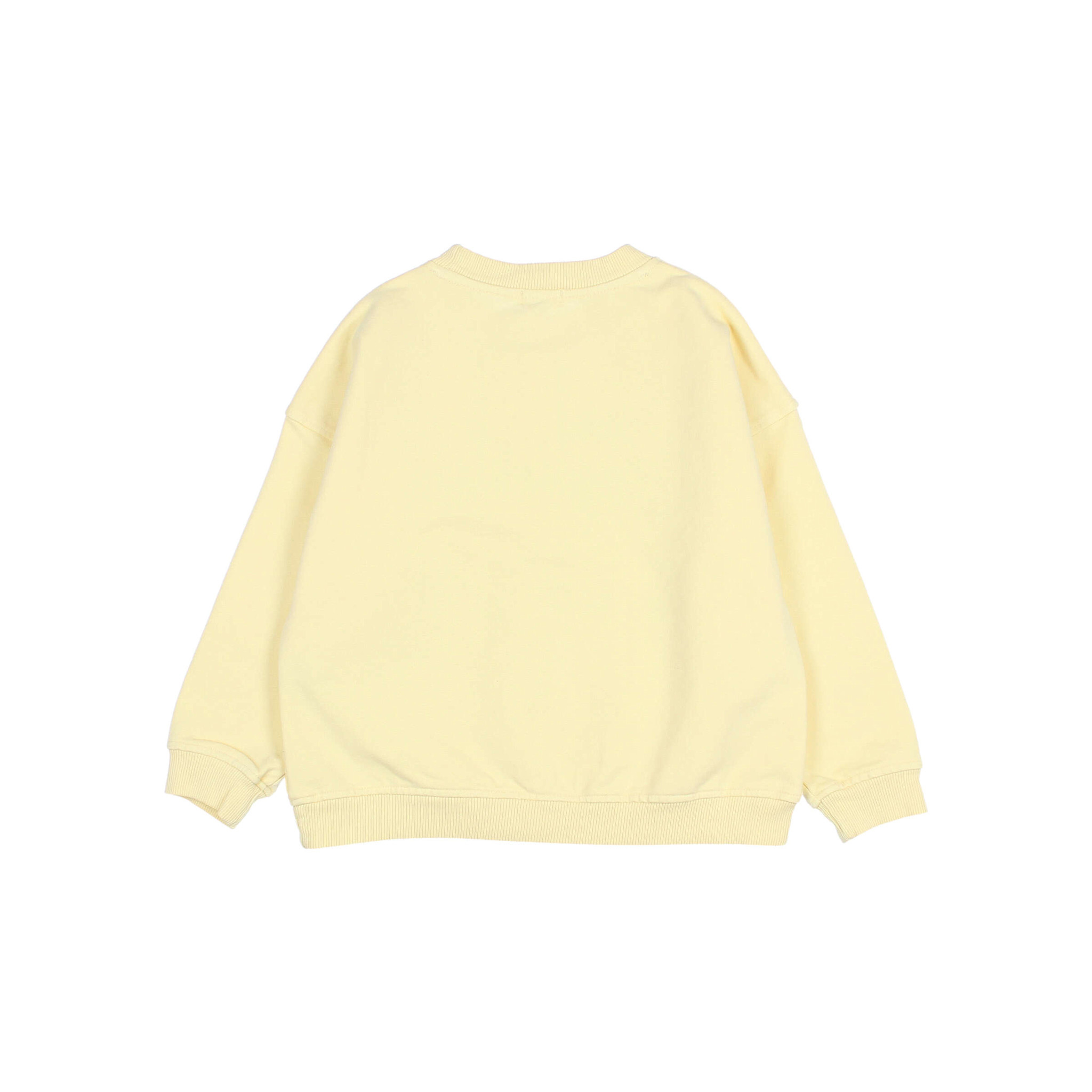 Soft organic cotton fleece sweatshirt with a happy print on the chest. Round neck. Ribbed trim.