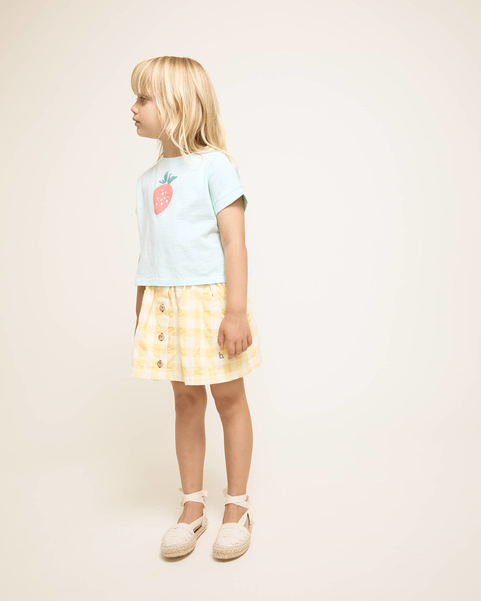 Account aanmakenShort-sleeved gingham shirt in cotton seersucker. Bowling collar. Front fastening with wooden buttons and contrasting thread buttonhole detail. Decorative label on the side of the hem.