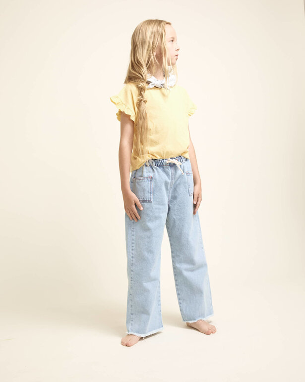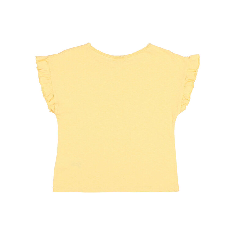 Account aanmakenCotton linen T-shirt. Short-sleeved with ruffles. Round neck.