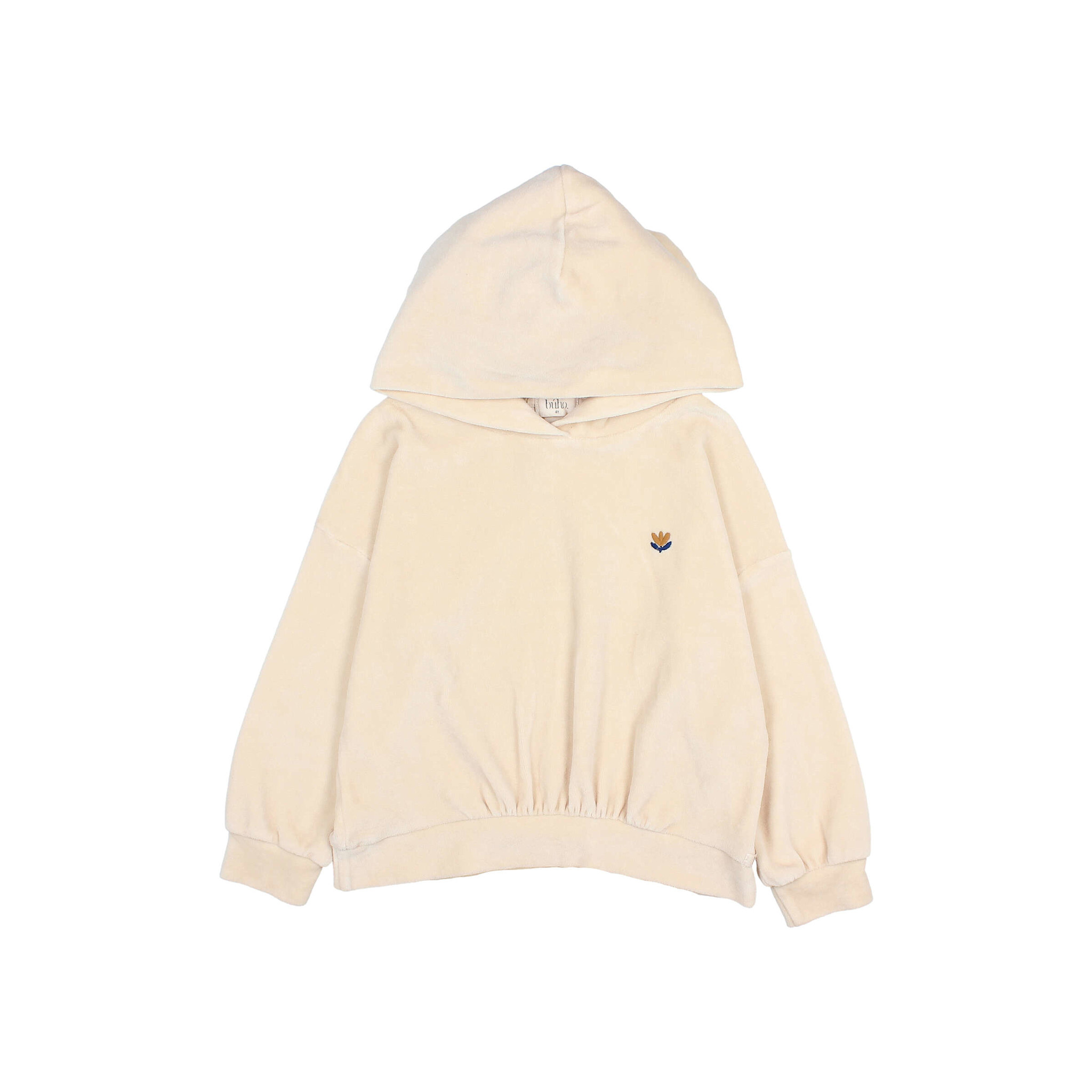 Account aanmakenVelvet hooded sweatshirt. Embroidered flower detail on chest. Gathered hem and cuffs.