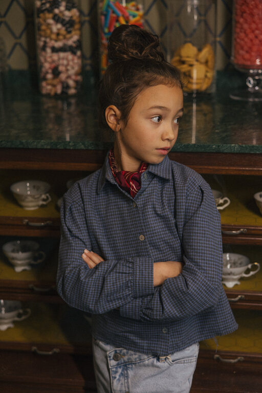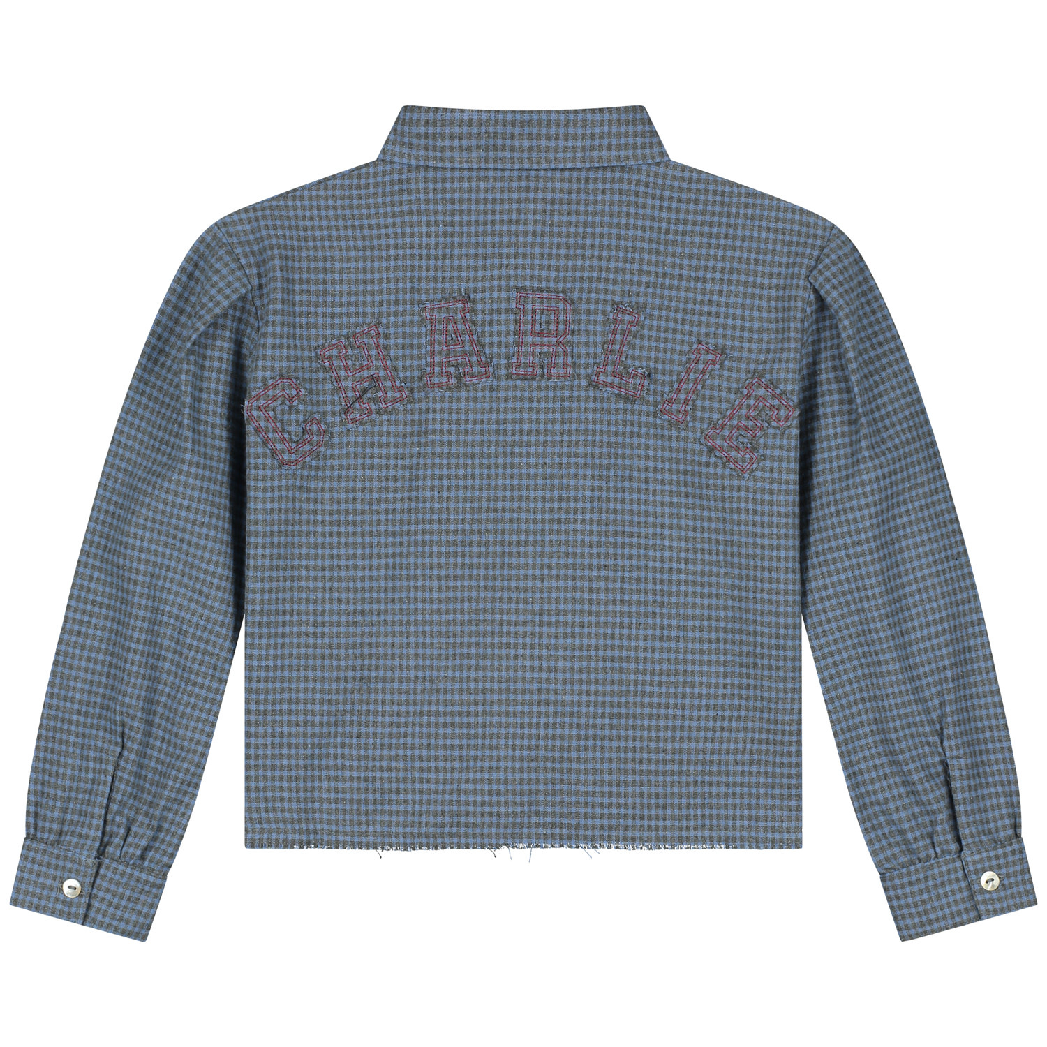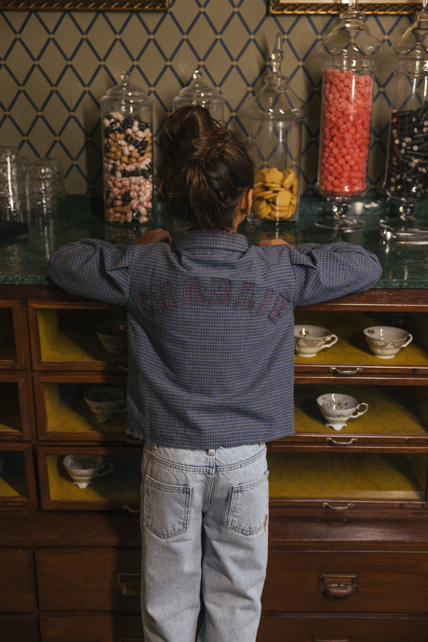 The Niki Blouse is a cute and comfy essential, featuring a classic checked pattern in grey and denim blue. Made from 100% cotton, it’s soft and breathable for all-day wear. A playful red “Charlie” stitched on the back adds a signature touch. Perfect for everyday adventures or dressing up for special occasions.