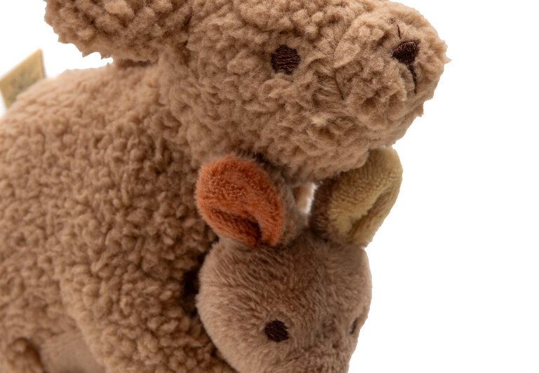 Account aanmakenHoe lief is deze wagenhanger uit het Kangaroots thema! De zachte kangoeroe draagt haar baby veilig in de buidel, waar het stevig vastzit. Samen vormen ze een knus duo dat zorgt voor een gevoel van warmte en geborgenheid onderweg. Gemaakt van superzacht coral fleece en afgewerkt met fijne details, waardoor de hanger niet alleen schattig oogt maar ook heerlijk aanvoelt. Dankzij de handige ring bevestig je de wagenhanger eenvoudig aan de kinderwagen, zodat jouw kleintje altijd dit lieve kangoeroetje dichtbij heeft.