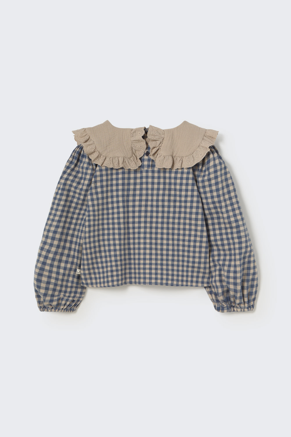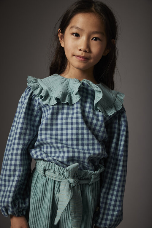 Account aanmakenThis girls’ blouse is crafted from soft, brushed flannel in a classic gingham plaid pattern, made from 100% sustainable cotton. It features a squared Peter Pan collar in contrasting textured fabric with a lace trim detail. The button-front design allows easy dressing, while puffed sleeves with elastic cuffs provide a comfortable fit. Warm and smooth to the touch, perfect for cooler days.