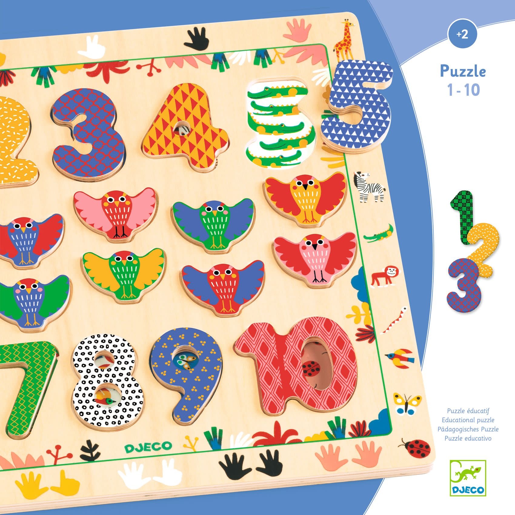 Account aanmakenEen kleurrijke, educatieve houten puzzel die perfect is om kleine kinderen kennis te laten maken met de cijfers 1 tot 10 en om hun logica en motoriek te stimuleren. Het kind legt elk cijfer op de juiste plaats door de hieronder afgebeelde dieren te tellen: 1 giraf onder het cijfer 1, 2 olifanten onder het cijfer 2, 3 leeuwen onder het cijfer 3... enzovoort! Een leuk spelletje verrijkt het leerproces: kinderen kunnen de dieren rondom de puzzel tellen of de cijfers verkennen aan de hand van tekeningen van handen.