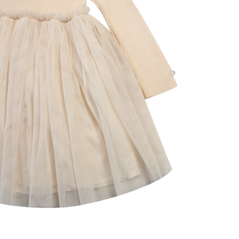 Deze prachtige jurk met een tule rok zal je babymeisje veranderen in een fee! De gebreide bovenkant met een hoge hals zorgt ervoor dat je kleine meid warm blijft tijdens de feestdagen, terwijl ze er nog steeds prachtig uitziet. Deze jurk zal binnen de kortste keren een favoriet in de kast worden!