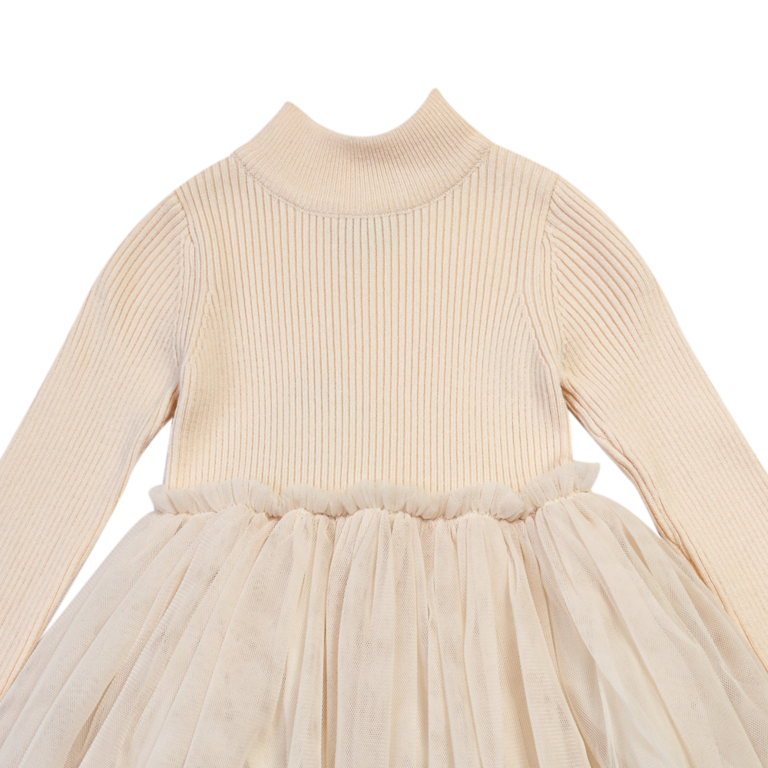 Deze prachtige jurk met een tule rok zal je babymeisje veranderen in een fee! De gebreide bovenkant met een hoge hals zorgt ervoor dat je kleine meid warm blijft tijdens de feestdagen, terwijl ze er nog steeds prachtig uitziet. Deze jurk zal binnen de kortste keren een favoriet in de kast worden!