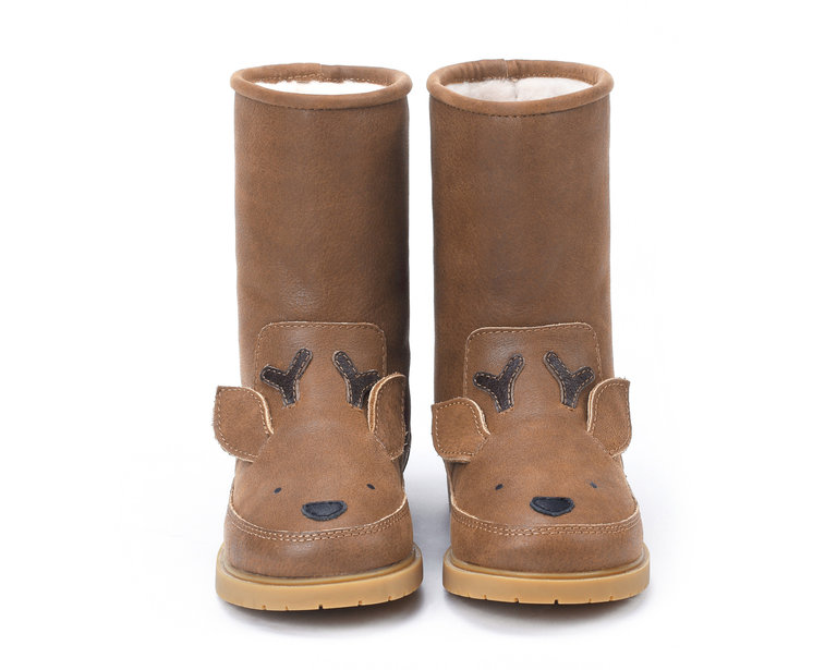 You look Staggering today! These amazing boots will take you anywhere! Dankzij het herkenbare Donsje dierenkarakter op de neus van de laars is ieder kind meteen gelukkig met zijn of haar nieuwe beste vriendjes. Deze eye-catchers zijn gevoerd met 100% schapenwol en ze hebben een stevige zool. Kinderen kunnen ze zelf aan trekken, gemakkelijk instappen en ze blijven goed zitten tijdens het lopen, rennen en spelen. Deze met de hand gemaakte leren laarzen vallen op maat, maar we raden door de voering aan om voor de zekerheid een maat groter te bestellen. Ze staan geweldig bij iedere outfit, onder rokjes, broeken, leggings, het kan allemaal. Een aanrader is om ze te combineren met onze beenwarmers. Deze laarzen zijn geschikt voor zowel jongens als meisjes. Ook raden we aan om de laarzen voor gebruik in te sprayen met een waterafstotend laagje.
