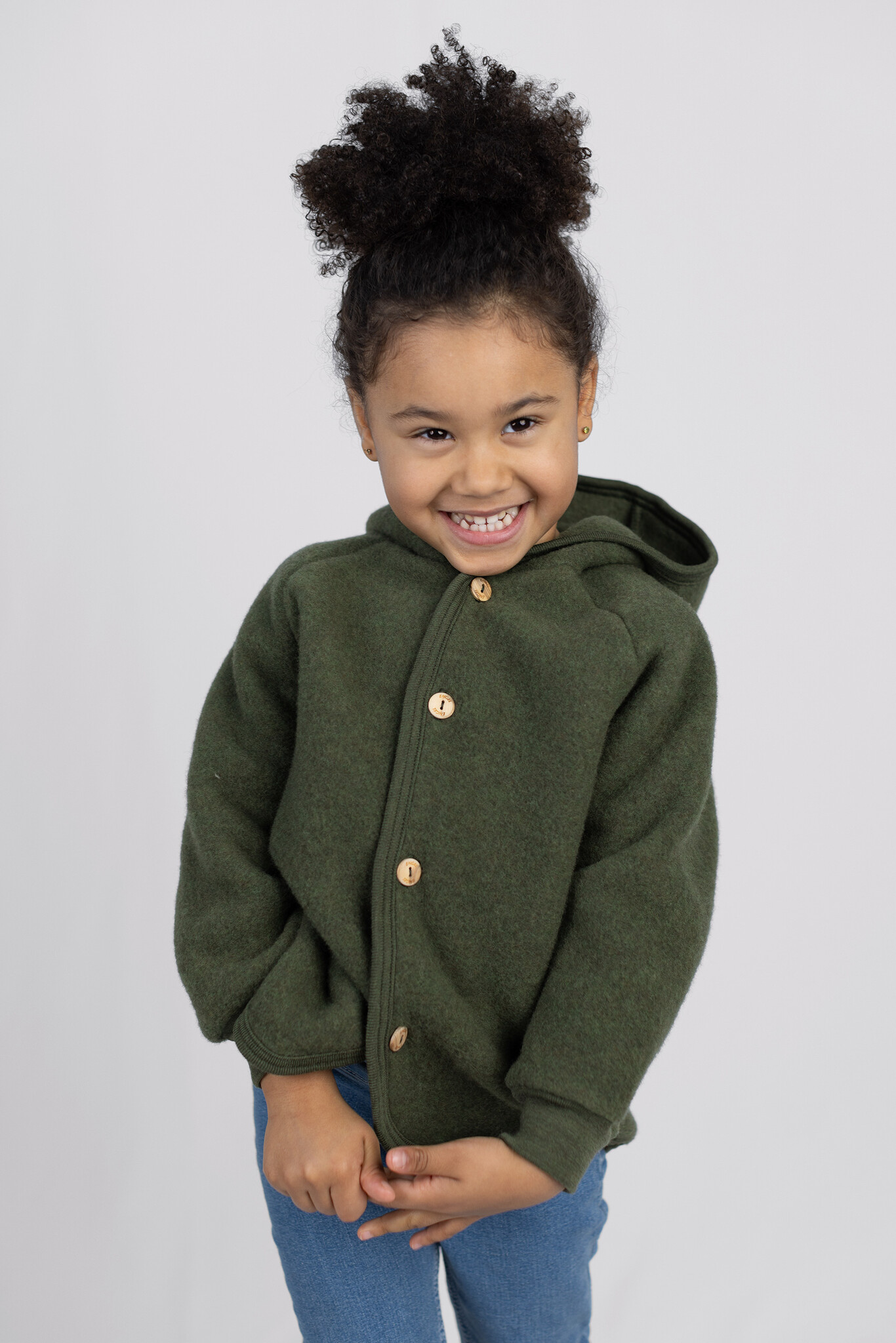 Account aanmakenThe popular hooded baby jacket with ENGEL wooden buttons is always a good choice and therefore one of our best selling items. Virgin wool stores body heat and has a temperature regulating effect. The cuddly fleece made of 100% organic virgin wool comfortably wraps the little ones and makes it particularly comfortable to wear. The hood additionally protects from cold winds.