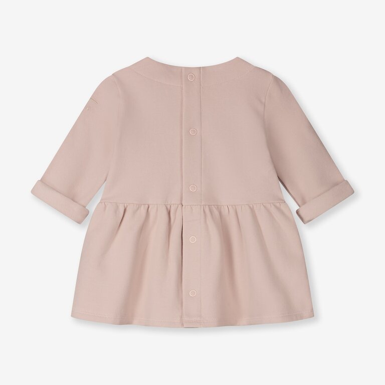 Account aanmakenEen zachte, comfortabele jurk voor baby’s, gemaakt van biologische katoenfleece met een beetje elastaan. Ontworpen met een ronde hals, verlaagde schouders en een gerimpelde rok voor een speels silhouet. Drukknoopjes aan de achterkant maken aankleden eenvoudig, de relaxte pasvorm zorgt voor bewegingsvrijheid en comfort.