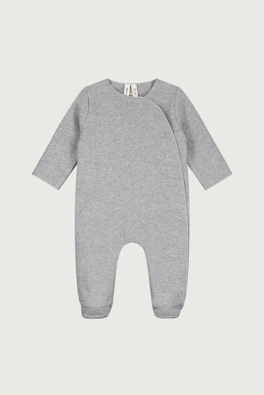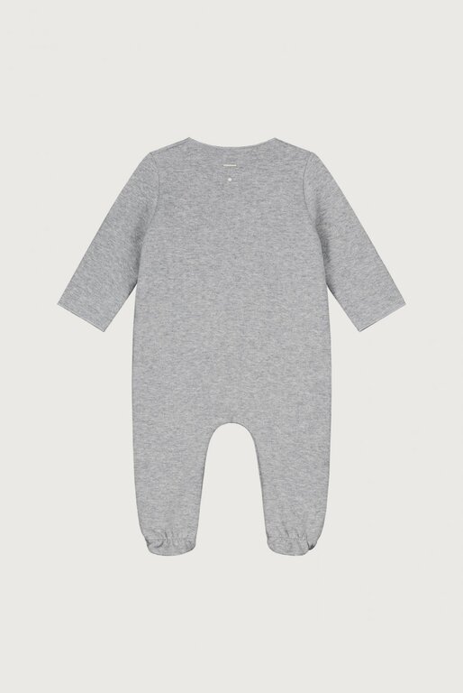Dit geboortepakje is gemaakt van onze zachte biologische katoenen fleece. Het pakje heeft een ronde hals en drukknopen aan de voorkant. Het heeft voetbedekking en zachte elastische tape aan de binnenkant van de enkel voor bewegingsvrijheid. Ons logo is op de achterkant van het geboortepakje gestikt, net onder de nek.