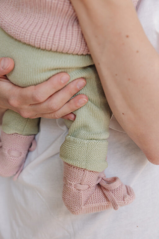 Account aanmakenOur knit baby booties are praised for their impeccable fit, thanks to a unique heel design that ensures they stay securely on tiny feet. The seamless knit and sewn-on laces provide added convenience, while the merino wool helps regulate temperature to keep little feet comfortably warm throughout all seasons. Presented in a charming cotton bag, they make a perfect baby gift, combining comfort, functionality, and style for your little one.