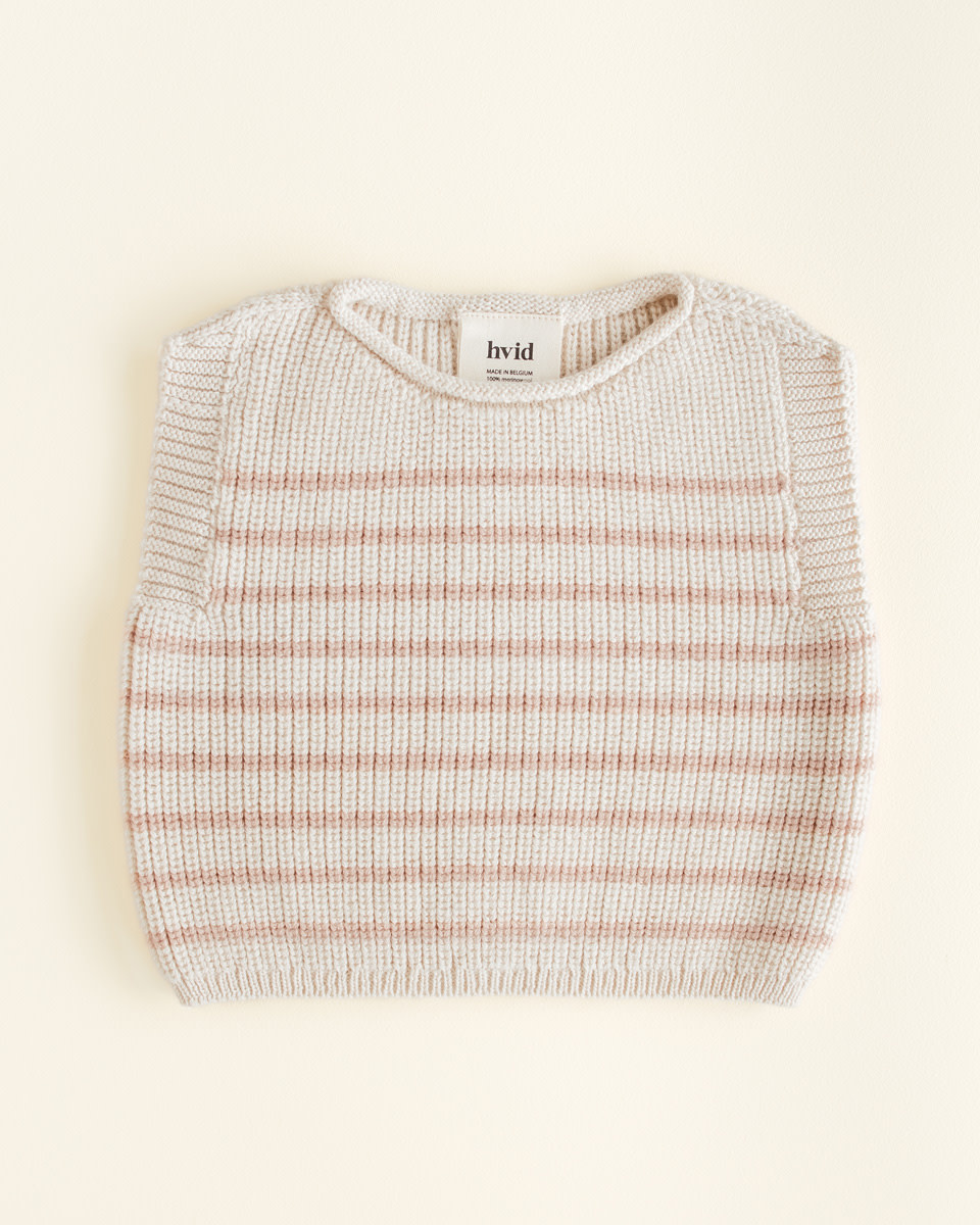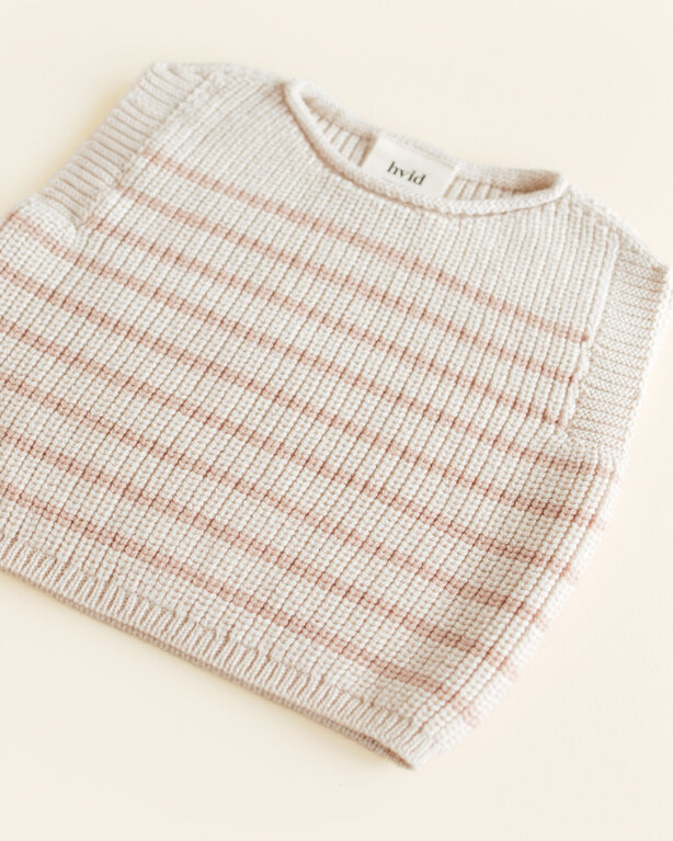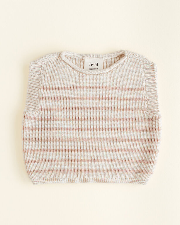 This seamless vest is knitted in one piece, what makes it very comfortable for babies. Thanks to our unique neckline, changing a baby is much easier. The collar stretches wide and is elastic. A subtle elastic thread in the collar allowing the neck to stretch when passing the head and then snugs on perfectly. The fisherman's rib makes it the softest vest. Combine it easily with a body to make a happy outfit.