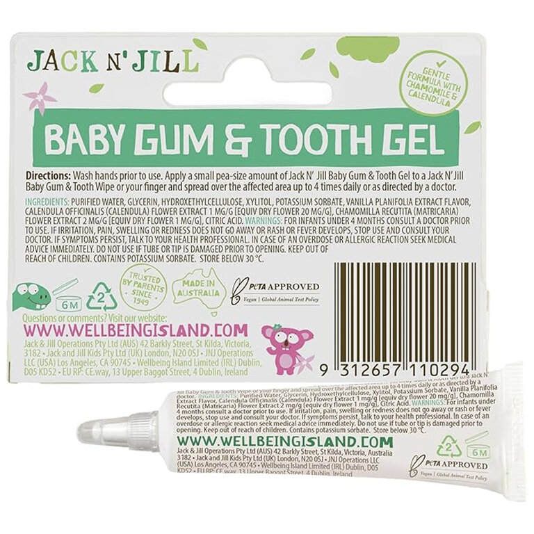 - GENTLE CARE FOR YOUR LITTLE ONE - Jack N' Jill Baby Gum & Tooth Gel keeps your baby's mouth fresh with its gentle formula, offering soothing care for your little one