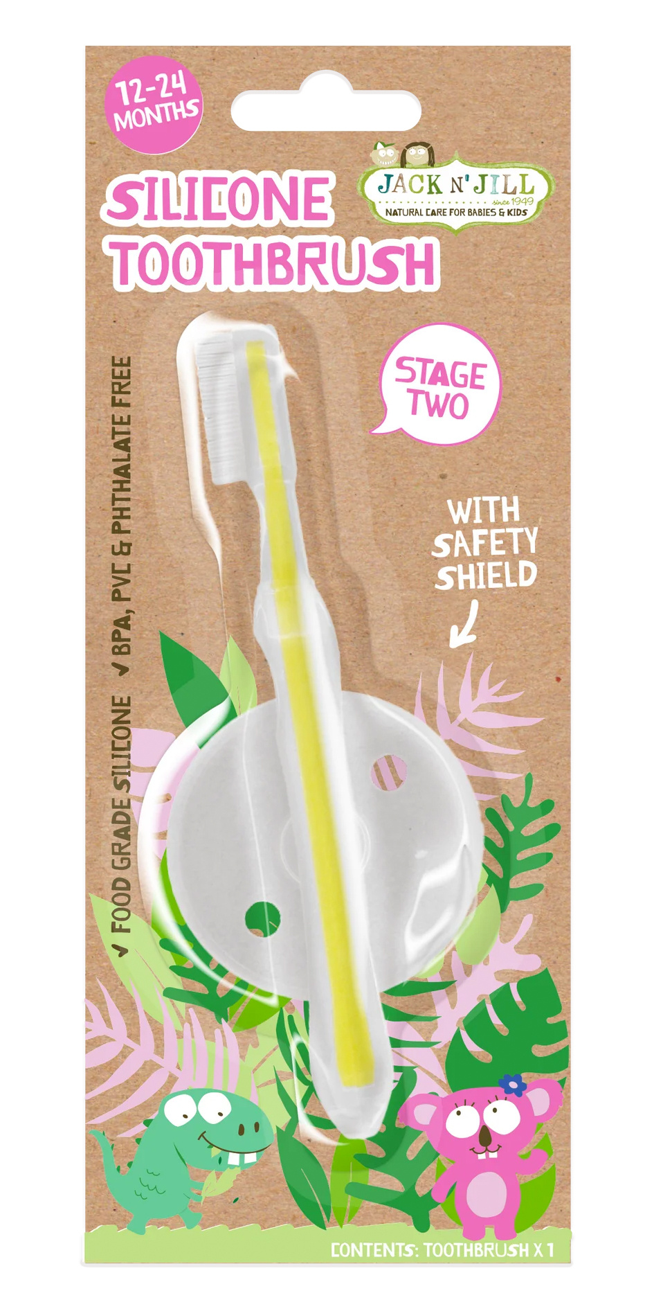 However we understand this is often difficult to avoid with young babies/children and recommend supervision at all times. If the Silicone Toothbrush is chewed the bristles may come off, but not to worry. Jack N’ Jill Silicone Toothbrushes are made of inert medical grade silicone which is non-toxic, and if swallowed, can pass through the digestive system without any problems.