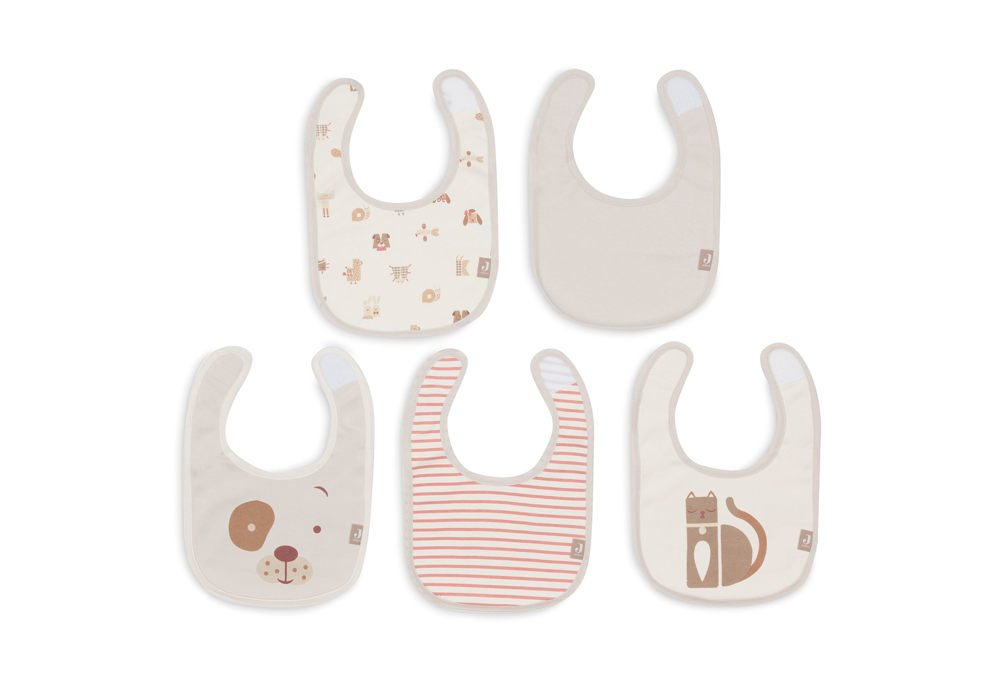 Account aanmakenDeze 5-pack waterproof slabbetjes maken het ouderschap een stuk eenvoudiger! Dankzij de handige klittenbandsluiting trek je ze snel aan en uit, zonder gedoe. De slabbetjes houden de kleding van je kleintje schoon en droog, zodat jij kunt genieten van de momentjes samen. Elk slabbetje heeft een schattige Animal Friends print. Welke diertjes herkent jouw kleintje in deze slabbetjes?
