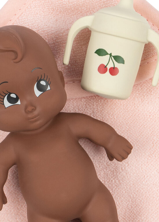 DOLL AND BOTTLE 100% NATUAL RUBBER CLOTH AND TOWEL 100% COTTON