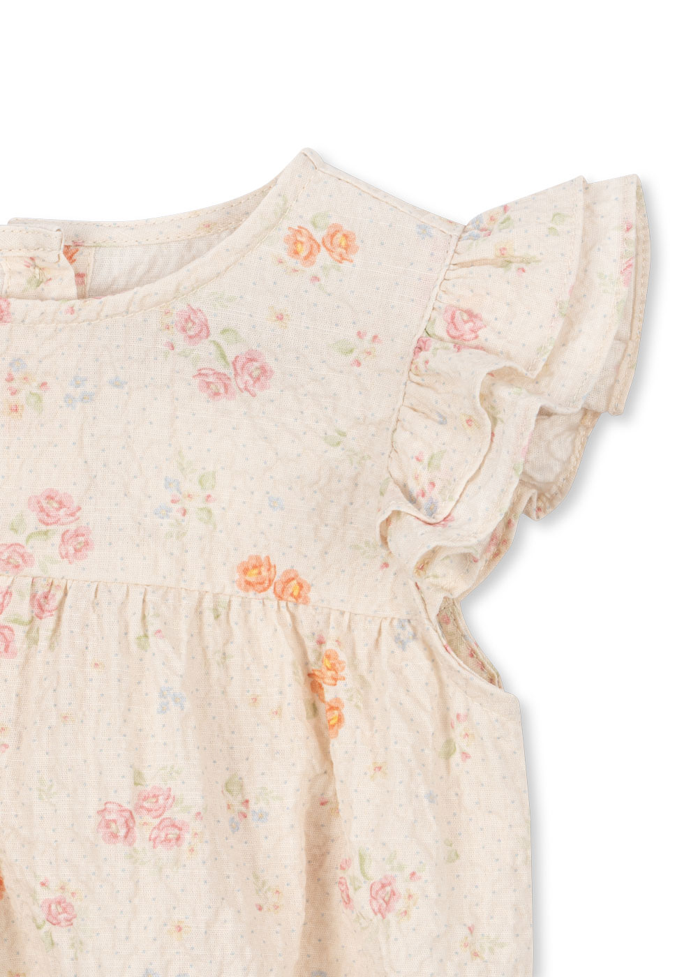 Account aanmakenShort-sleeved romper in a soft and crinkled organic cotton seersucker fabric. Features buttons between the legs for easy dressing.
