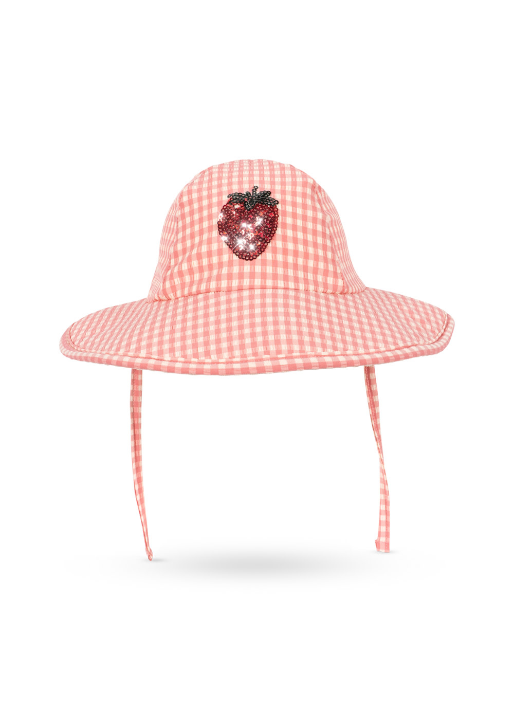 Account aanmakenSwim hat in soft and stretchy seersucker fabric with a padded brim. Fasten with strings under the chin for a comfy fit.