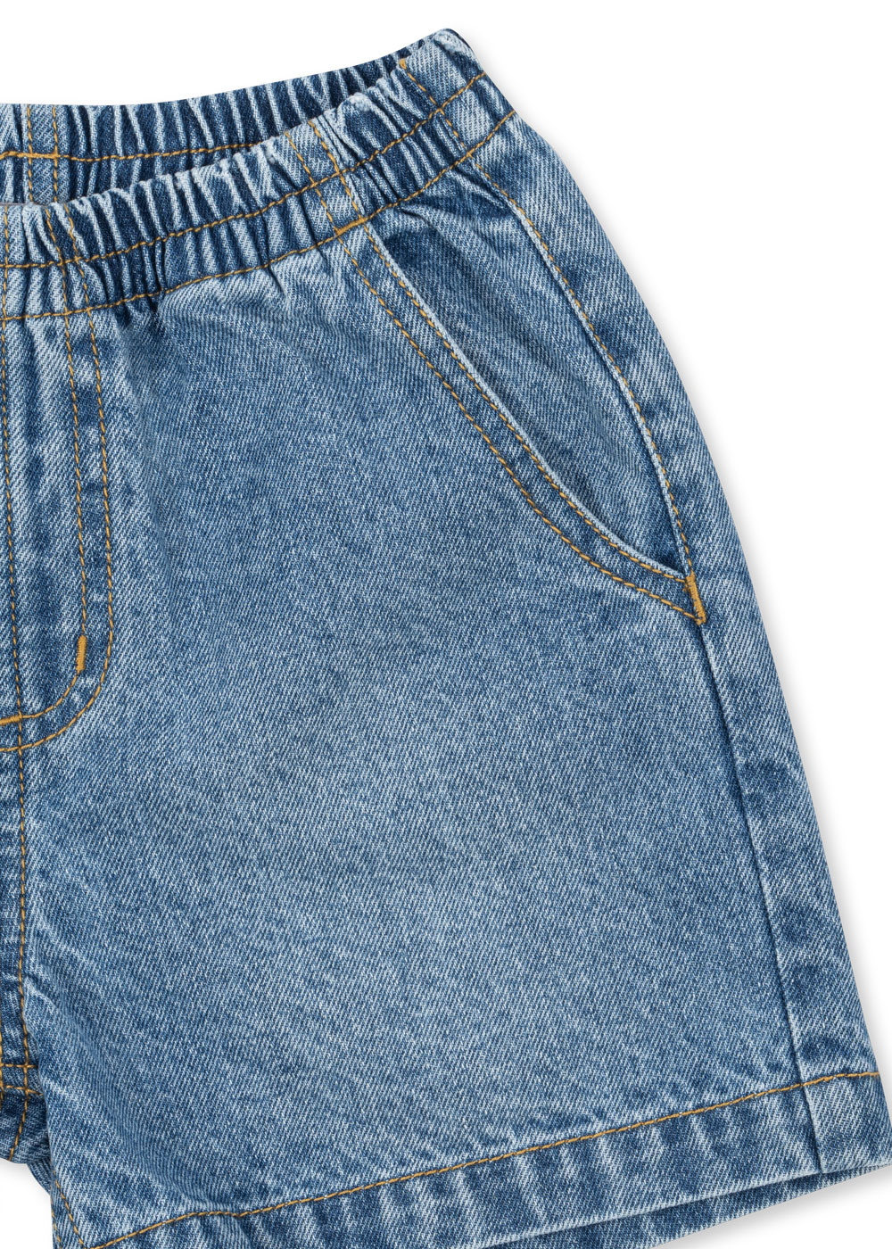 Classic denim shorts in a soft and durable quality with an elastic waistband, convenient side pockets, and a back pocket with our signature logo patched on.