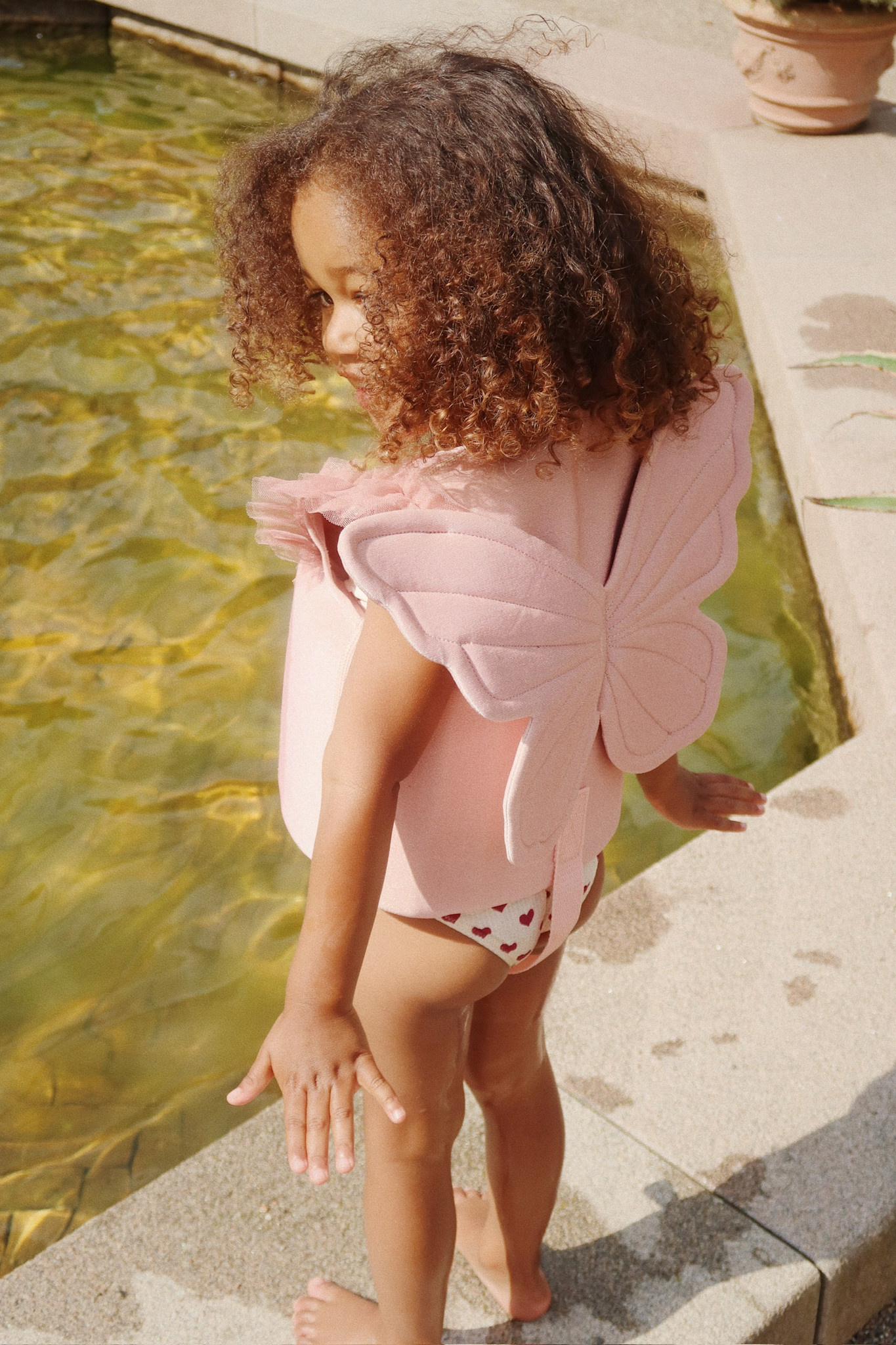 Account aanmakenGlitter swim vest with glitter tulle frills over the shoulders and butterfly wings on the back.