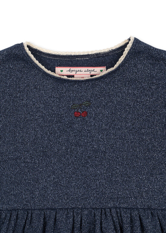 Account aanmakenSoft dress made in a stretchy cotton fabric. Woven with a shiny lurex thread that adds a sparkling finish to this everyday piece.