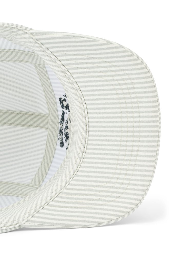 The classic RORY cap is made of breathable organic seersucker cotton with summery stripes and playful embroidery motifs in the front. It shades your little one's face and eyes from the sun and is a cool everyday accessory.