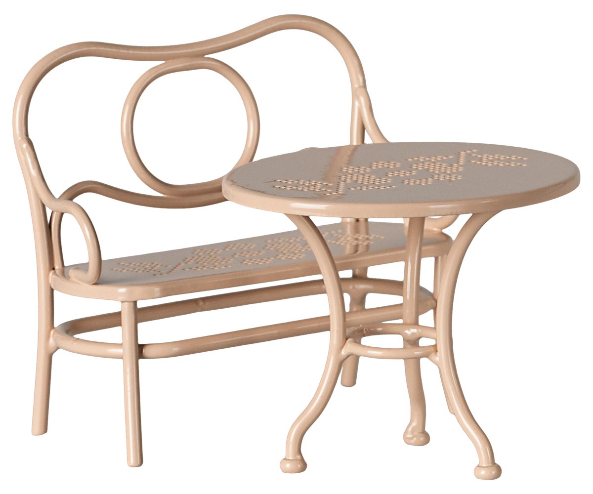 Account aanmakenCafé set furniture that fits the Mum and Dad sized mice. The set consist of a bench and a table, and is a perfect place for enjoying the afternoon tea.