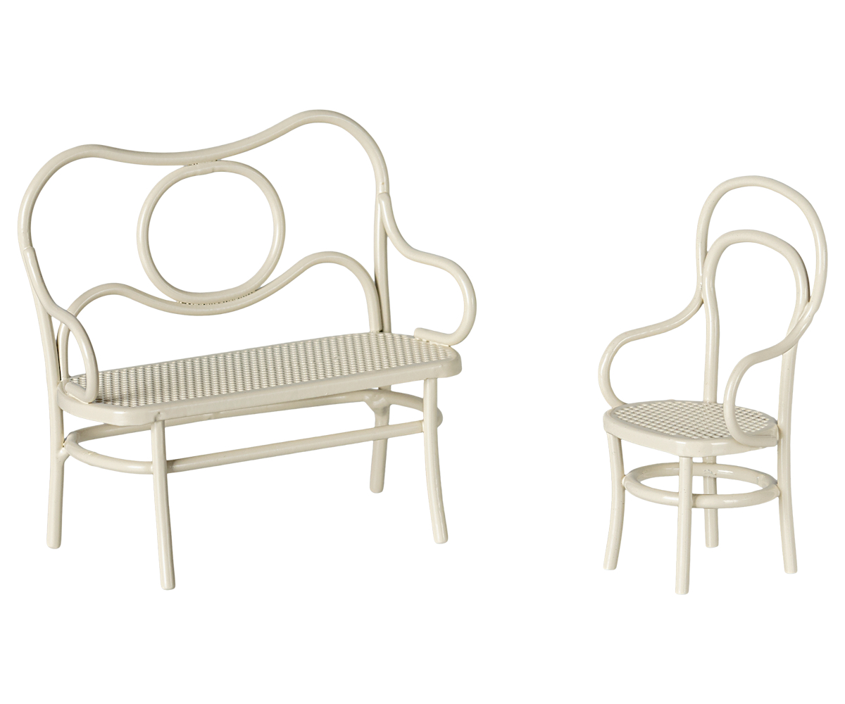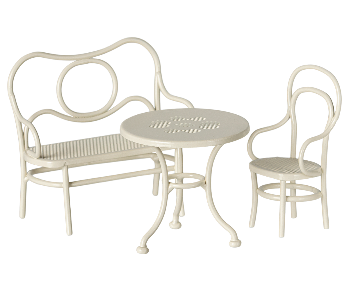 Account aanmakenCafé set furniture that fits the Little sister/brother and Big sister/brother mice. The set consist of a bench, a chair and a table, and is a perfect place for enjoying the afternoon sweets.