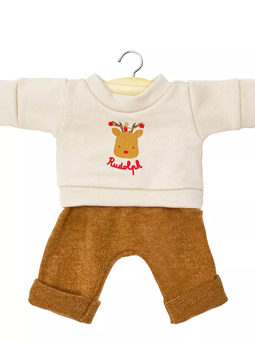Account aanmaken"Rudolph" set with screen-printed fleece top and knitted trousers for Minikane Gordis 34 & 37cm dolls and baby dolls .