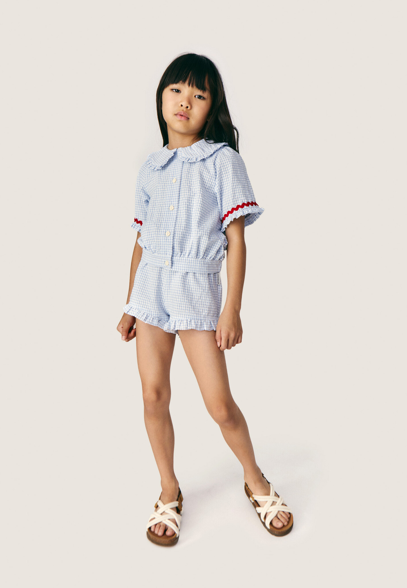 Fun-loving and free, these gingham shorts are a great addition to summer looks. Made with a comfortable elasticated waist, they reveal a fluid frill trim across the hem. - Elastic waist - MIPOUNET logo label - Frill trim