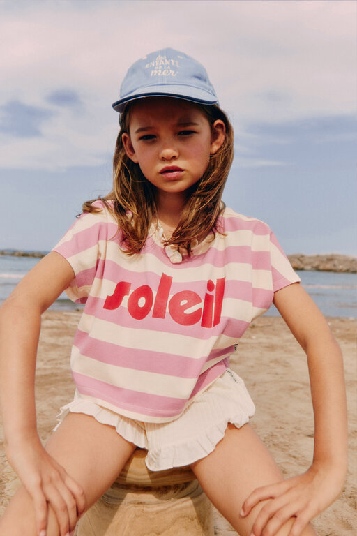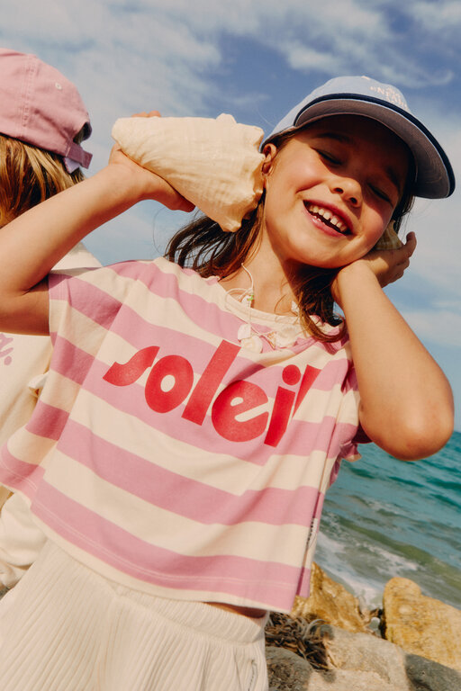 Account aanmakenBring all the sunshine and energy to the room with this cropped T-shirt. Crafted from organic cotton jersey, it's enriched with bold candy stripes and a stylised 'soleil' print across the chest. - Crewneck - Dropped shoulder - Short sleeves - 'Soleil' print - Cropped length - MIPOUNET logo label