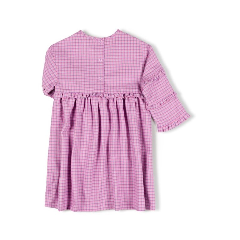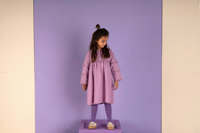 Account aanmakenDe Feel Dress met speelse, girly ruffles heeft een geruite print in paarse en roze tinten. De jurk is gemaakt van biologisch katoen en is aan de achterzijde voorzien van meerdere drukknoopjes. Het lederen Nixnut labeltje vind je onderaan de jurk terug. Dankzij het flanellen stofje is de jurk heerlijk zacht.