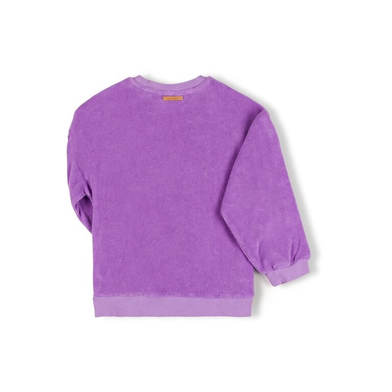 De Lux Sweater heeft een dropped shoulder met leuke girly details op de mouwen. De zachte trui van terry katoen heeft de paarse kleur ‘Iris’ en is gemaakt van biologisch katoen. De achterkant is voorzien van het leren Nixnut labeltje. Combineer met één van onze broeken, rokjes of shorts.