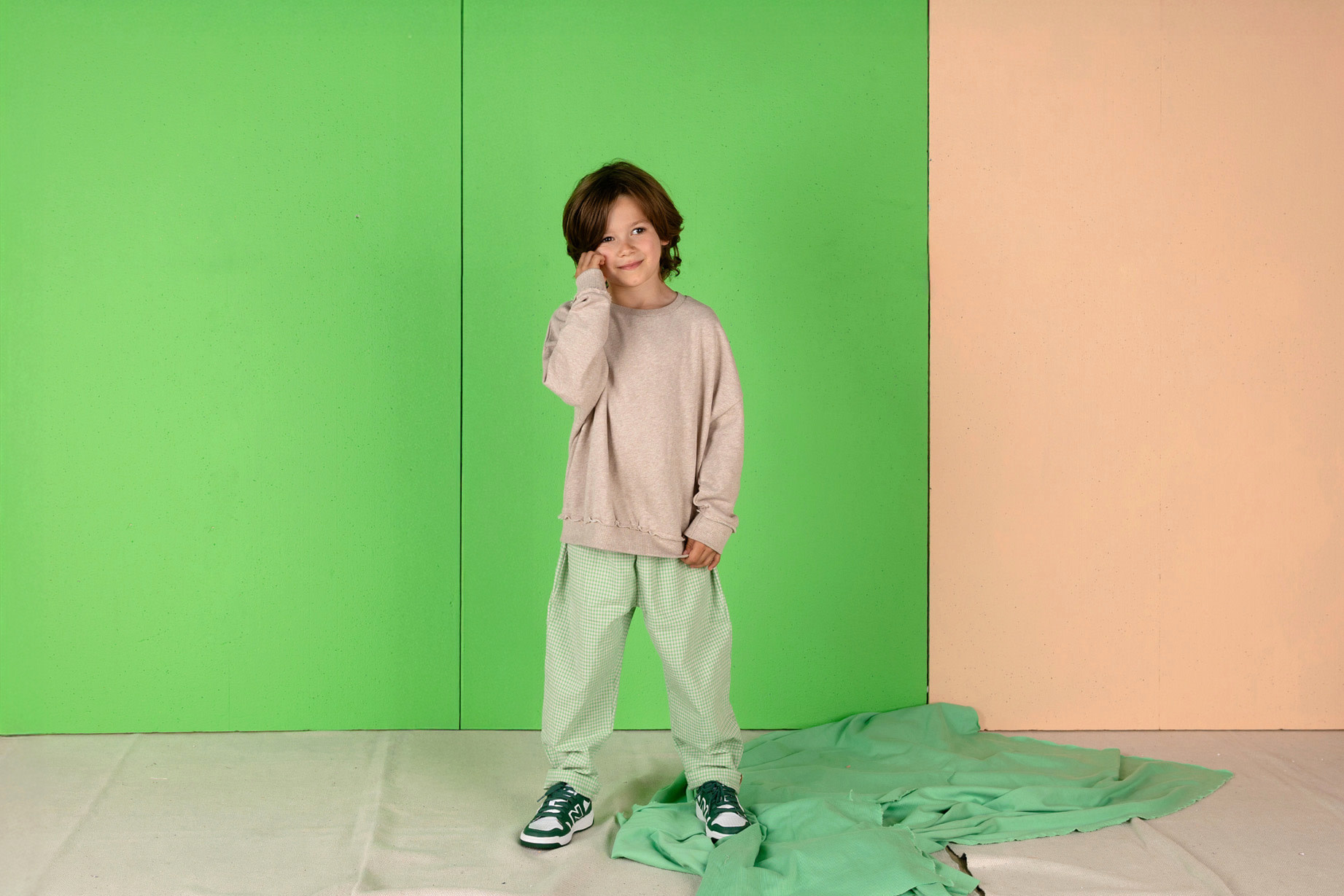 • Een erg leuk appelgroen met off white geruit broekje