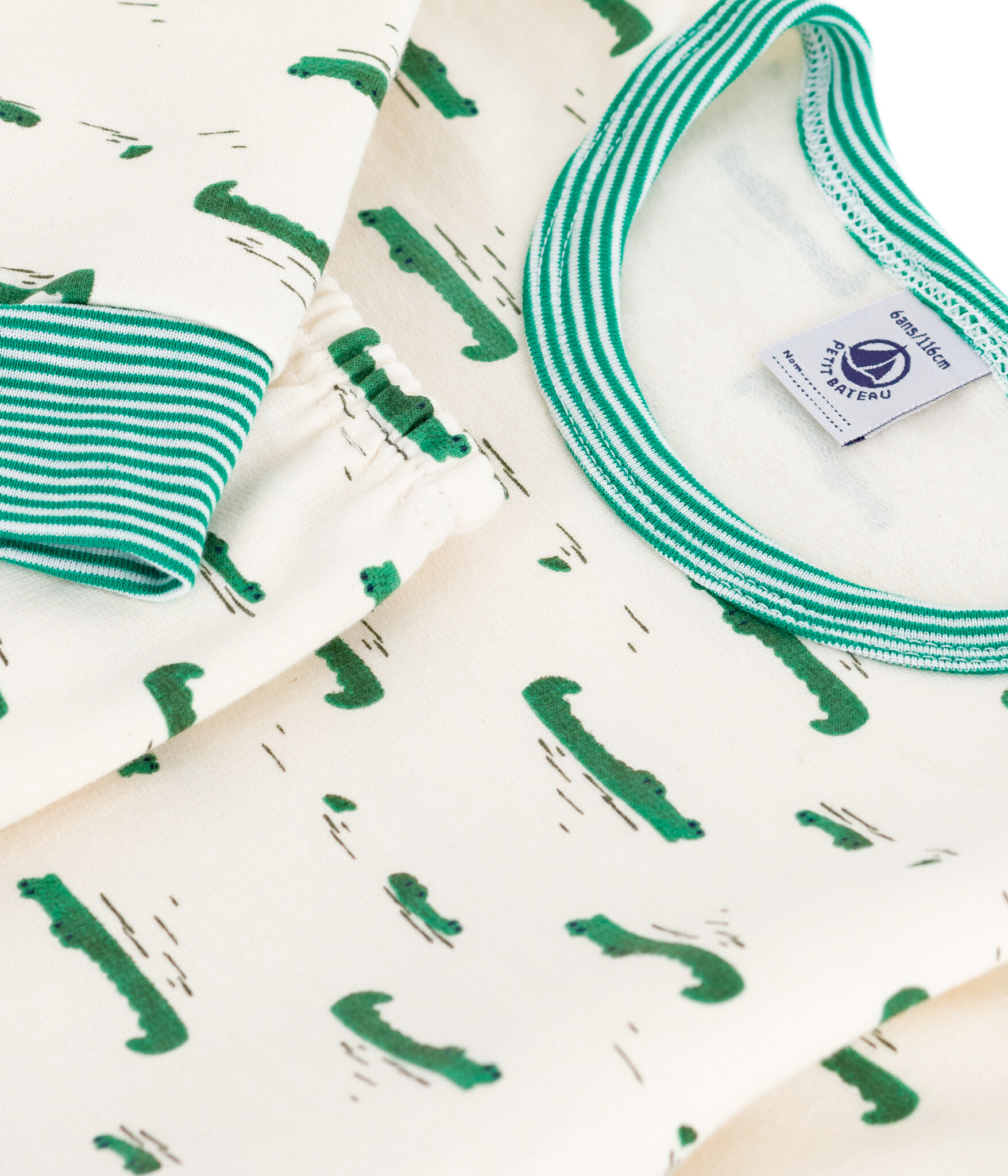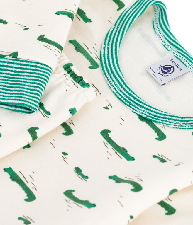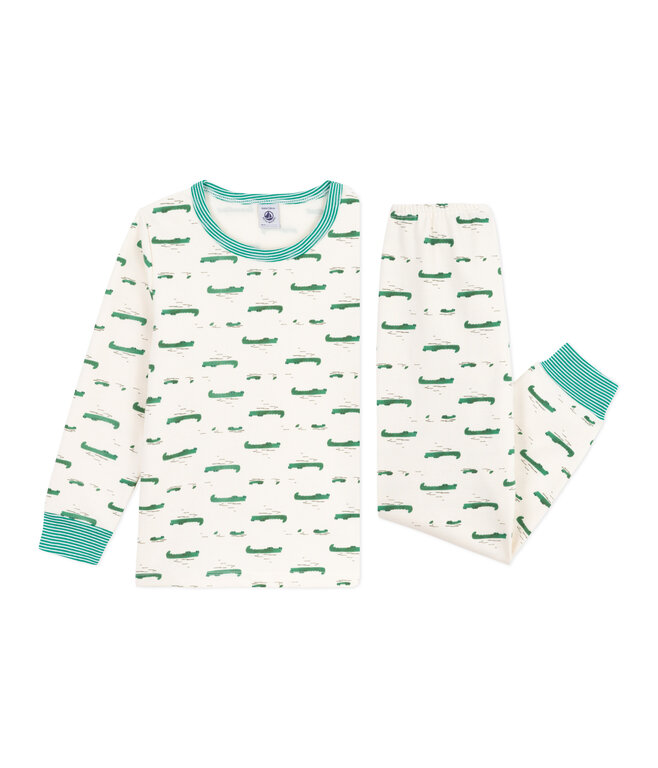 - Jongenspyjama van geruwde joggingstof, een zachte en comfortabele stof.