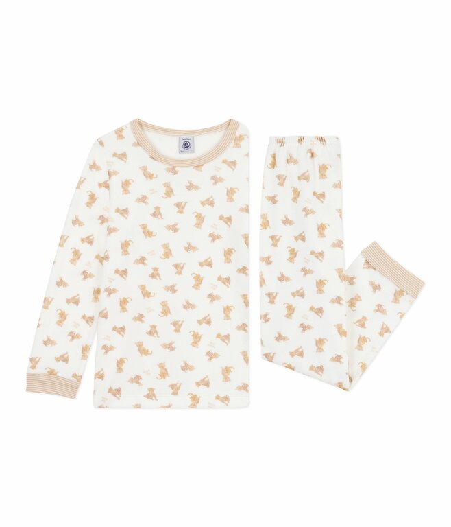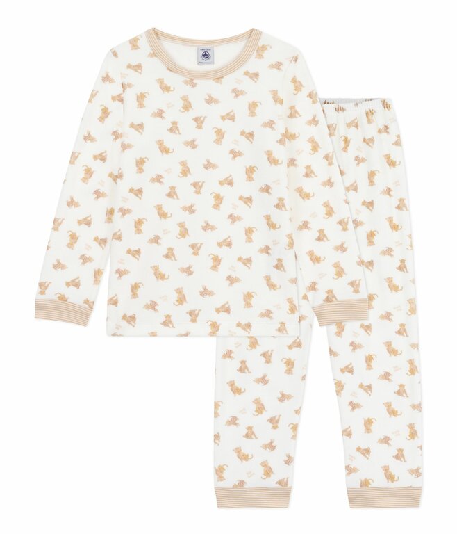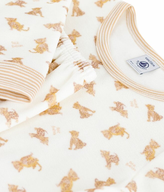 - Uniseks pyjama in fluwelen bouclé, een warme en verfijnde stof.