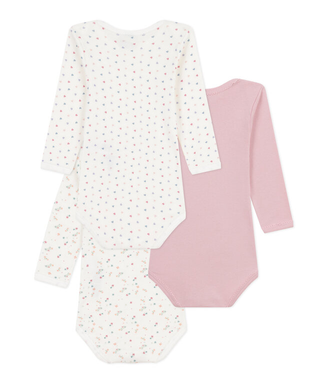 - Setje met 3 meisjesrompertjes met lange mouwen van 1x1-ribstof, een elastische en comfortabele stof.