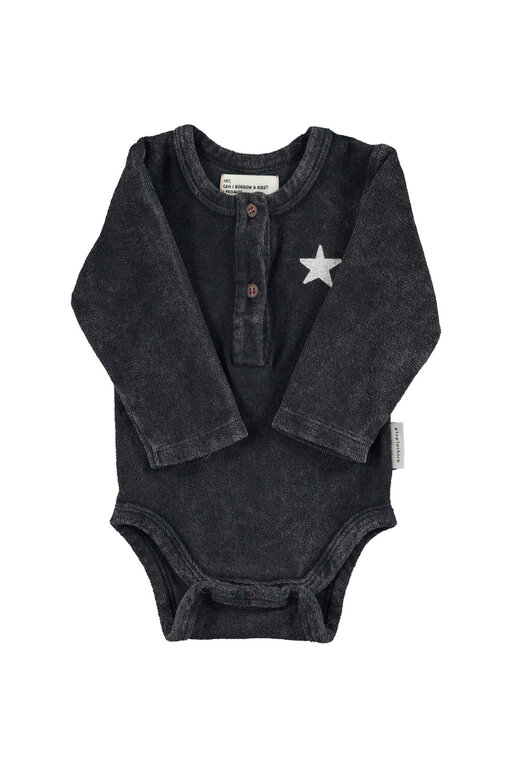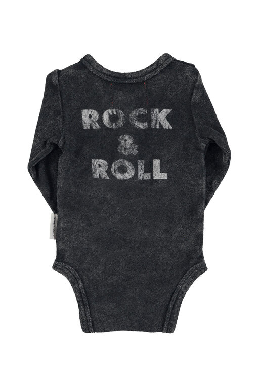 Account aanmakenLong sleeve bodysuit in terry cotton. Faded effect. Button fastening on the chest and snap-button fastening at the bottom. Detailed with small logo star on chest and white "rock & roll" print on the back.