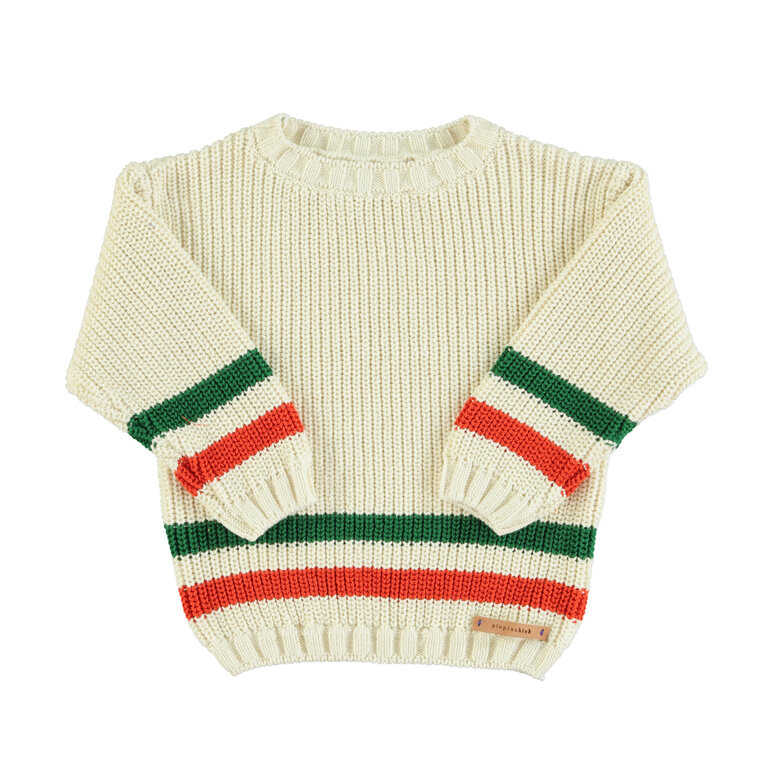 Account aanmakenKnitted sweater with round collar and rib endings. Detailed with two thin stripes on the waist and wrist. Detailed with leather logo label.