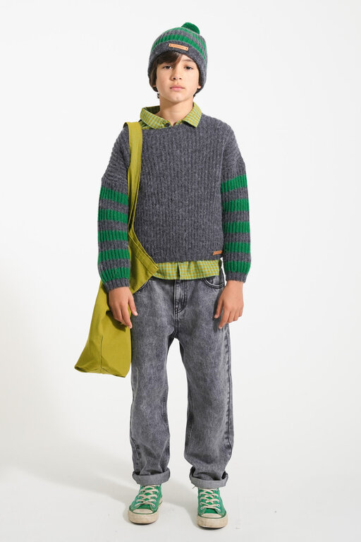 Piupiuchick Knitted sweater Grey & green stripes